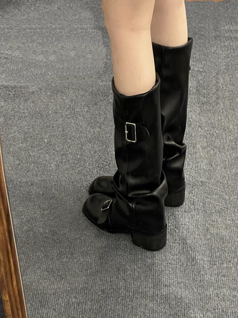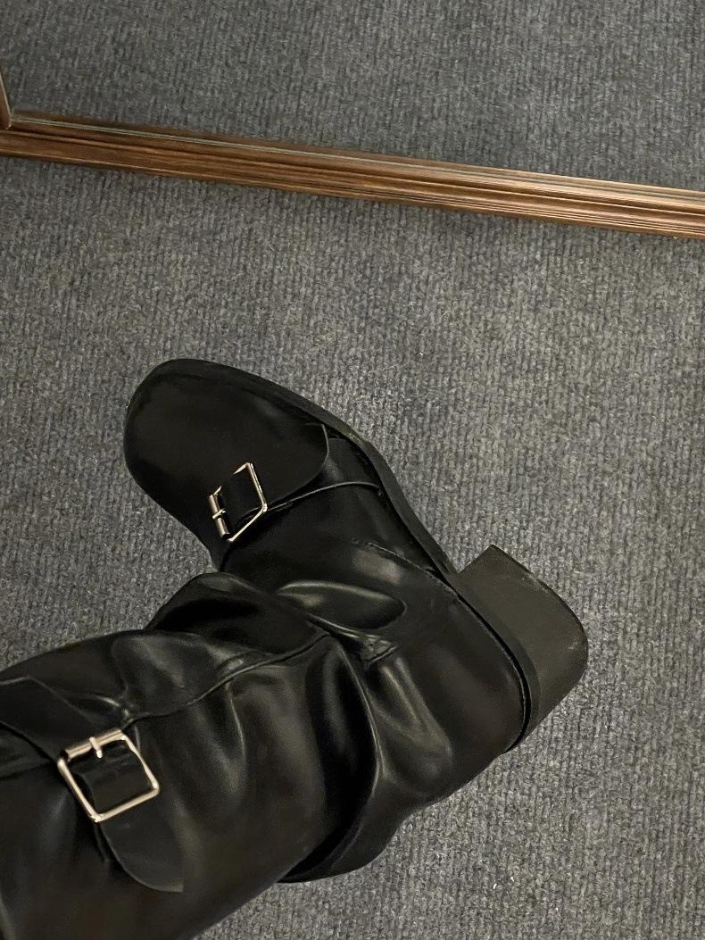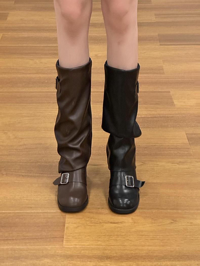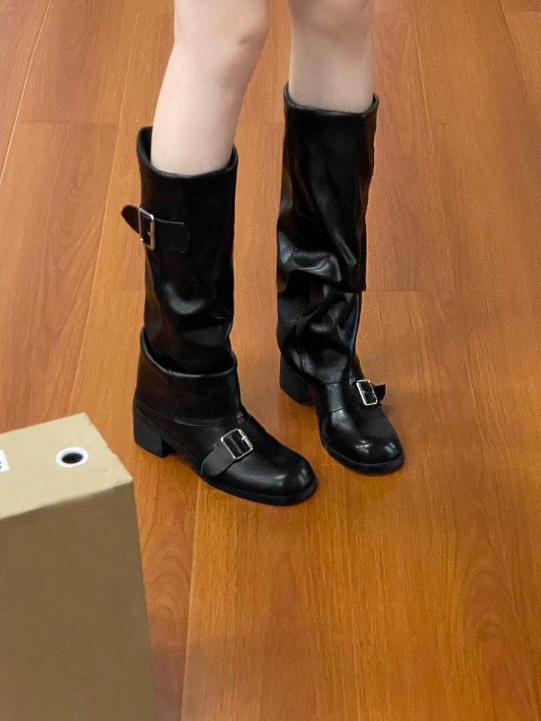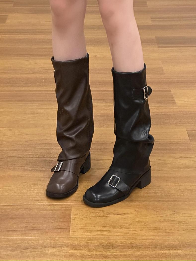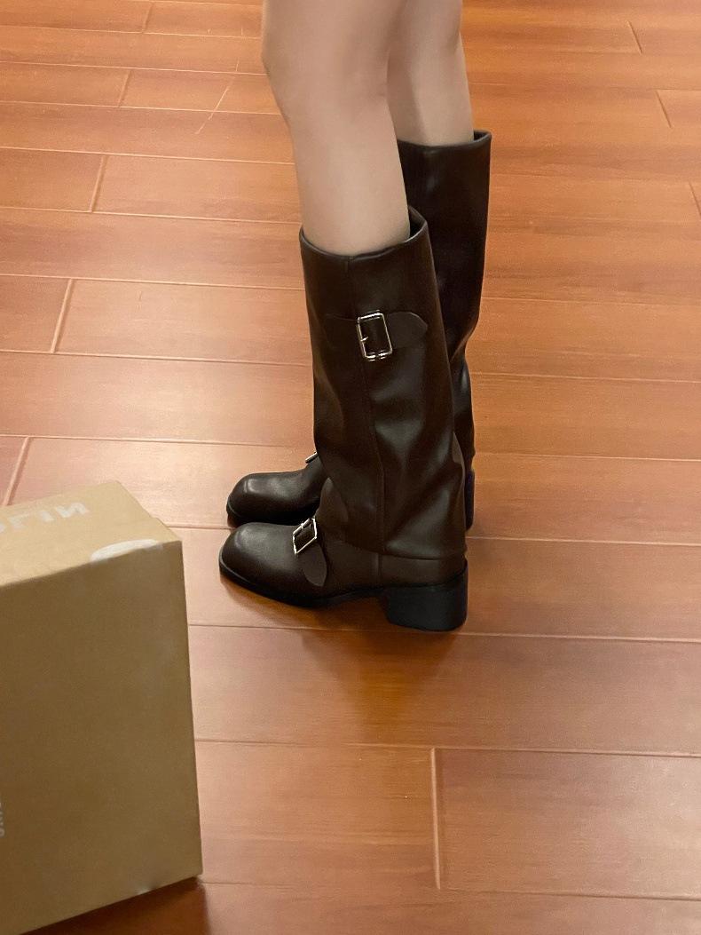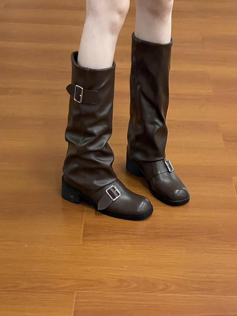 Compra Botas Retro Simples Marrones Tacón Grueso Botas Otoño e Invierno 2024 Botas de Caballero Plisadas de Alta Gama al por mayor en Joom.pro