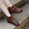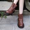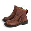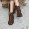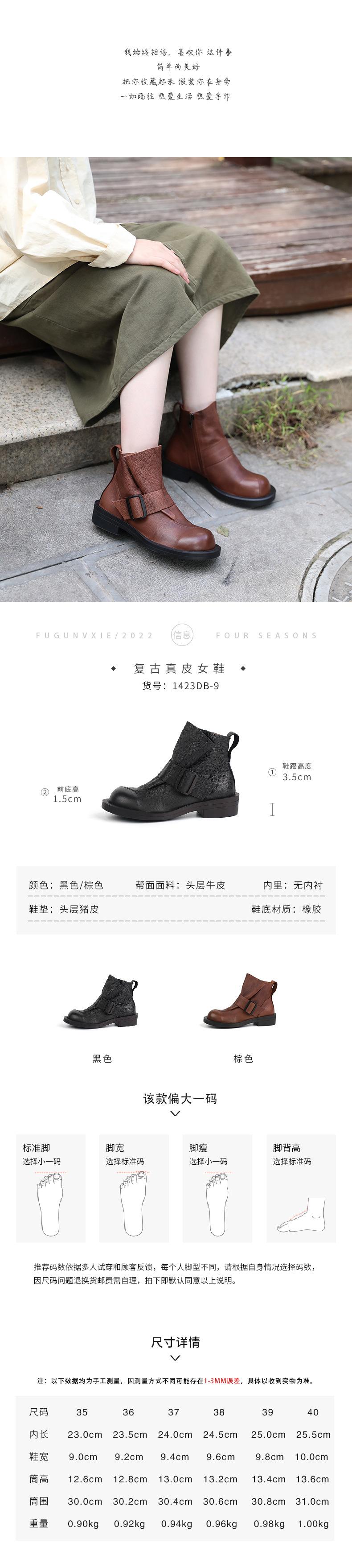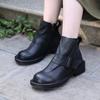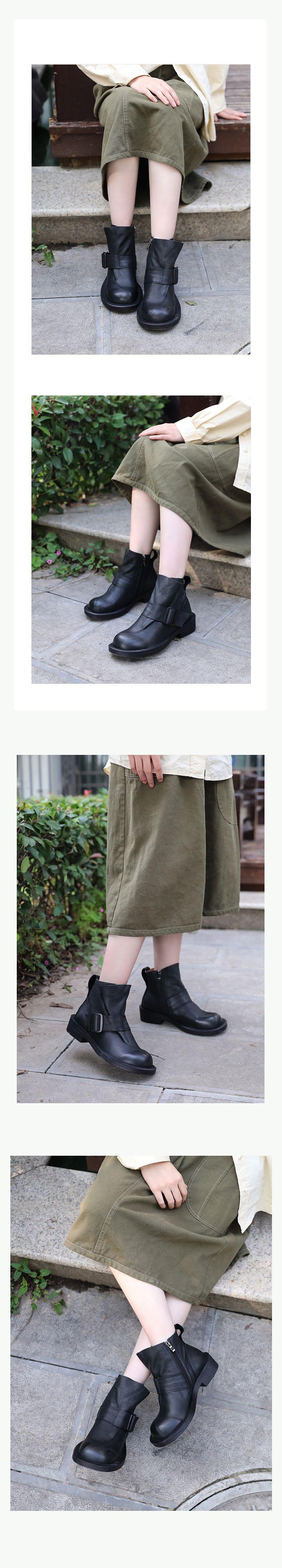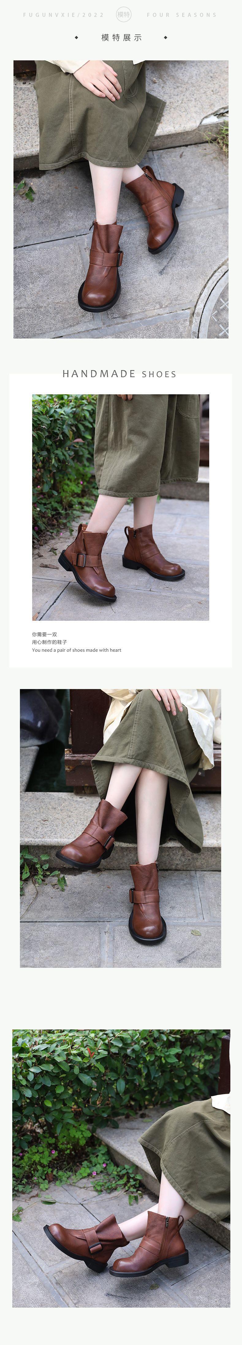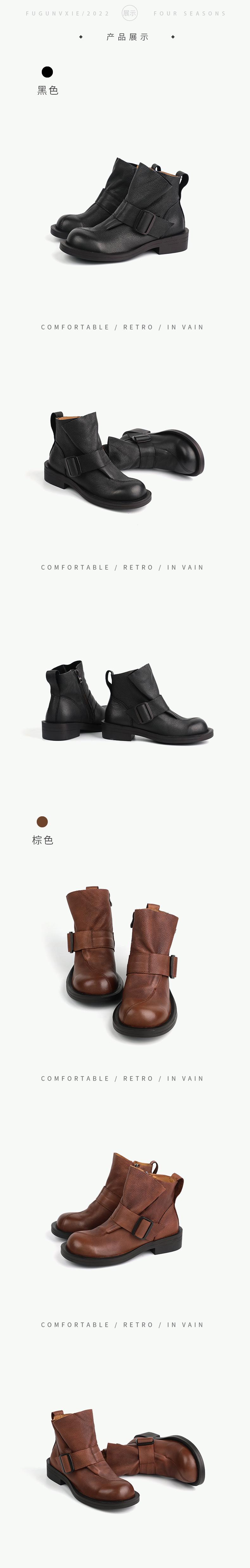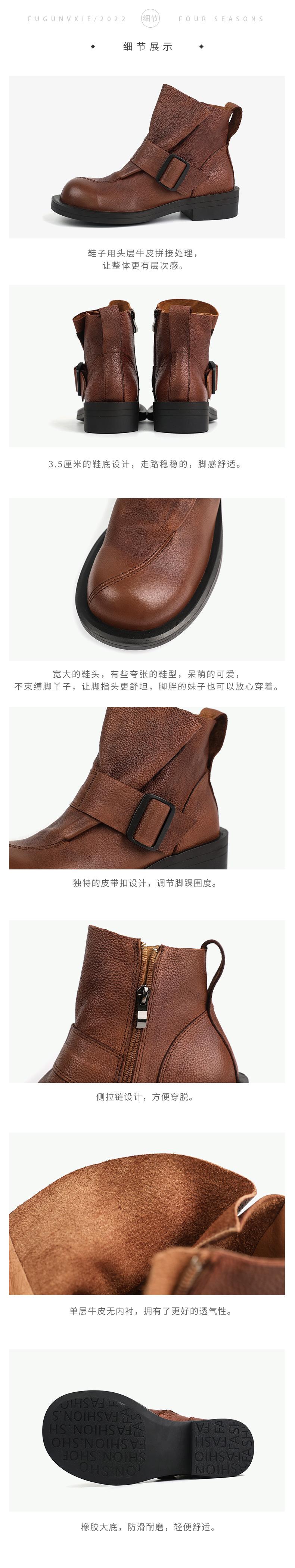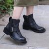Botas cortas de cuero con corte de cuero, de cabeza redonda, con cremallera lateral, de tacón bajo, de fondo suave, estilo retro informal, para mujer, botas de cuero para otoño, nuevas