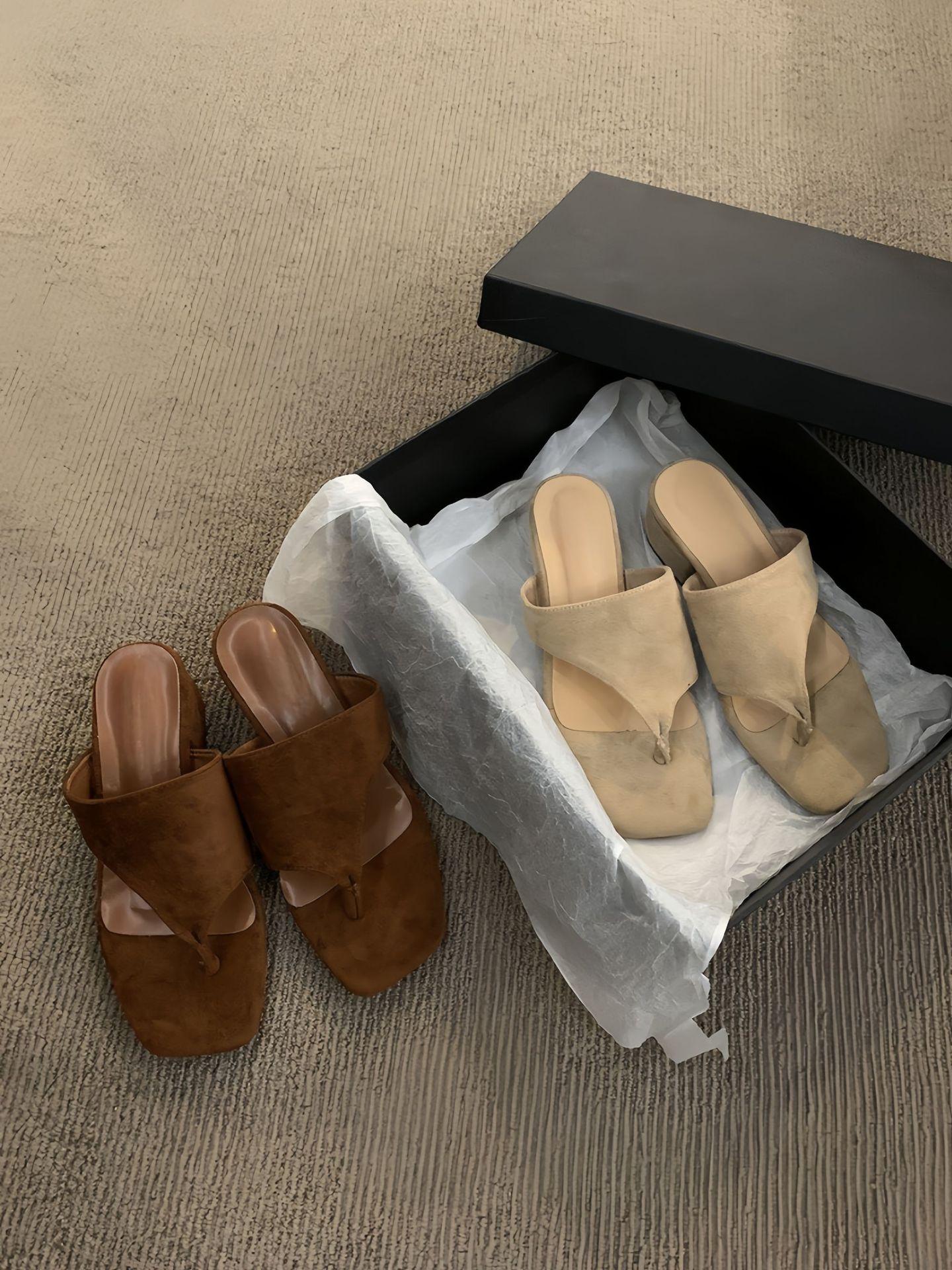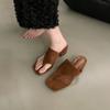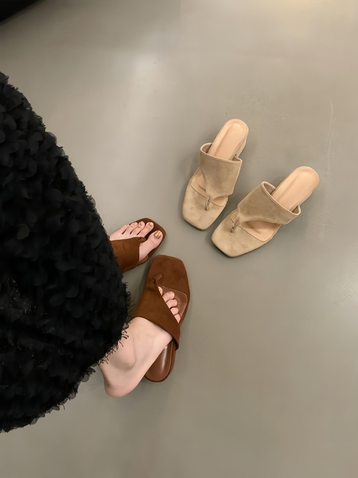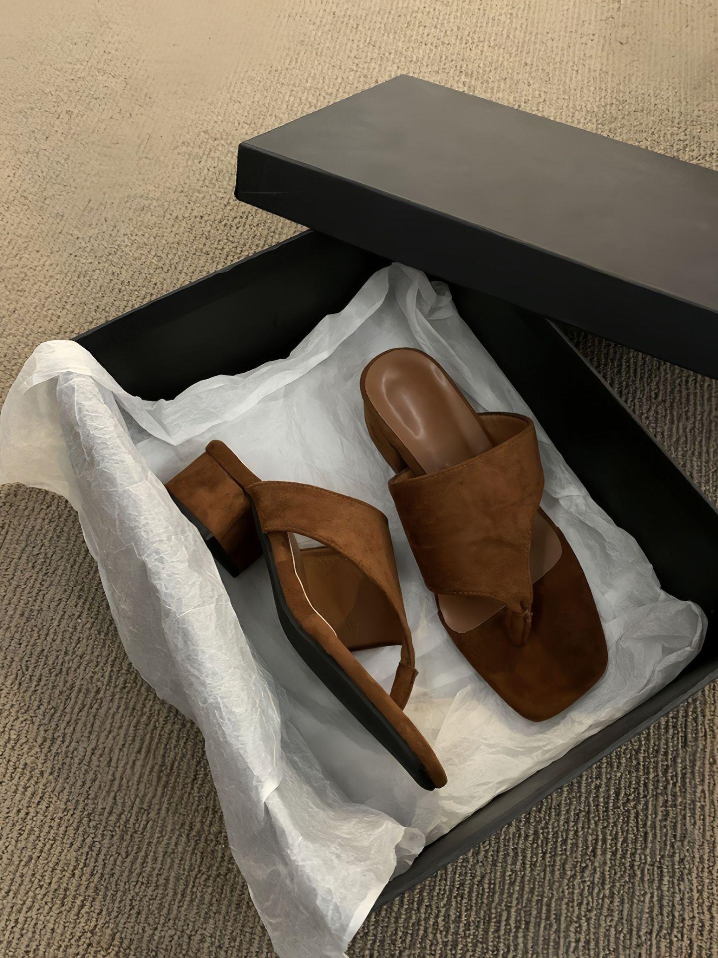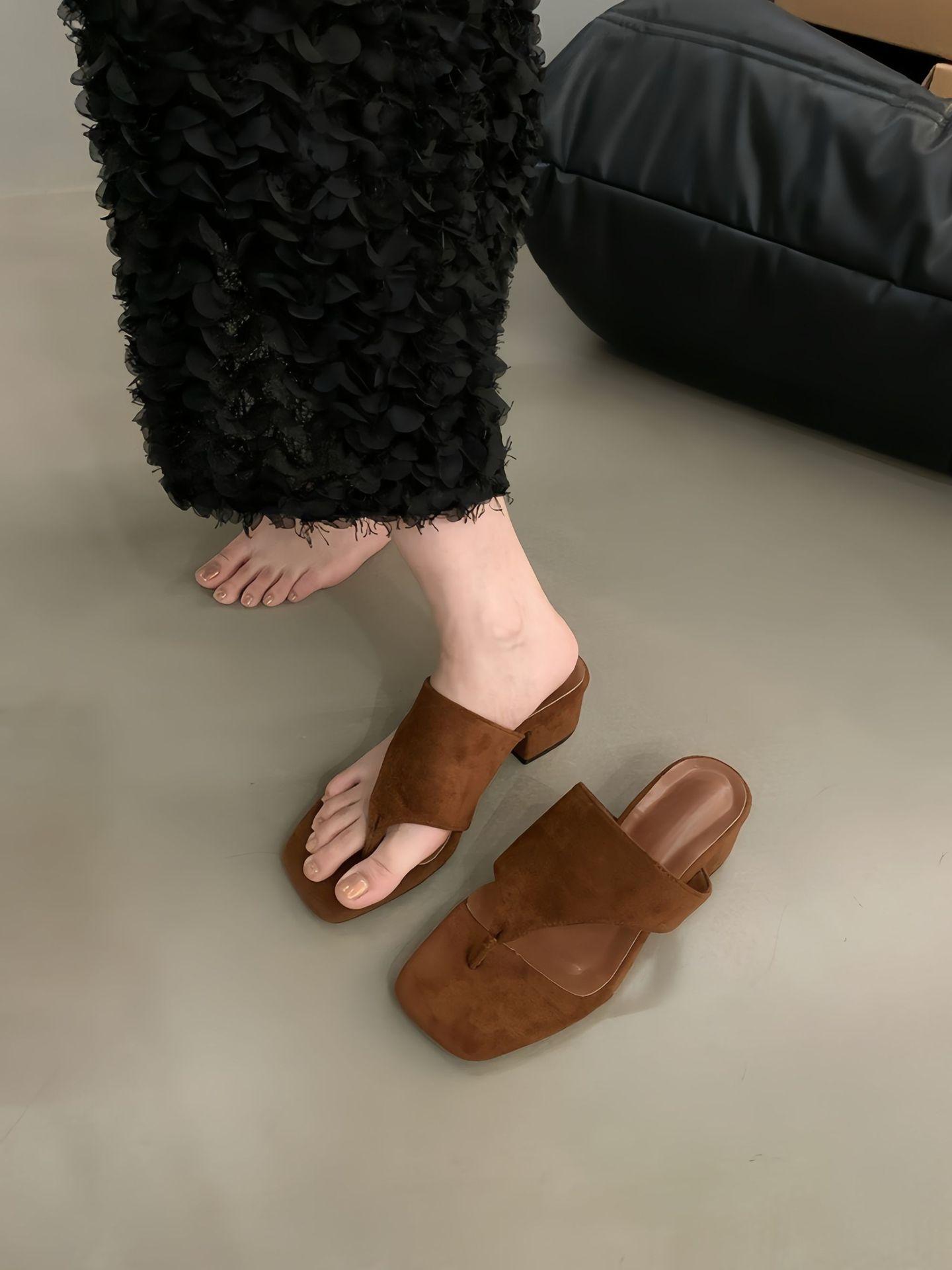 Chanclas de mujer para exterior de verano, elegantes, de ante, estilo hada, diseño retro, con tacón grueso.