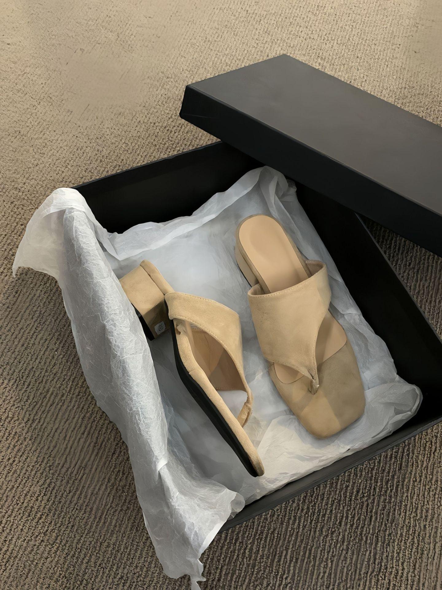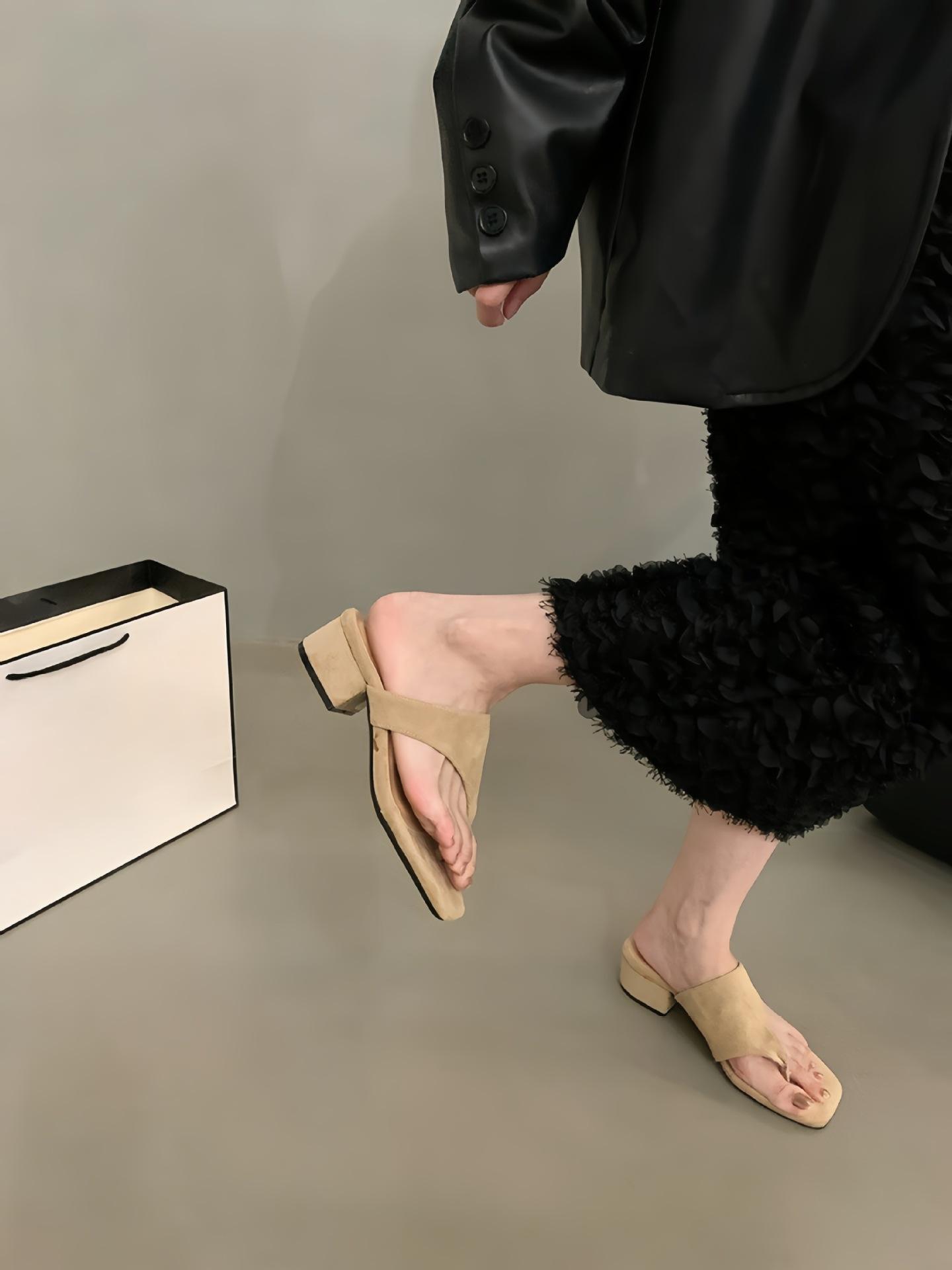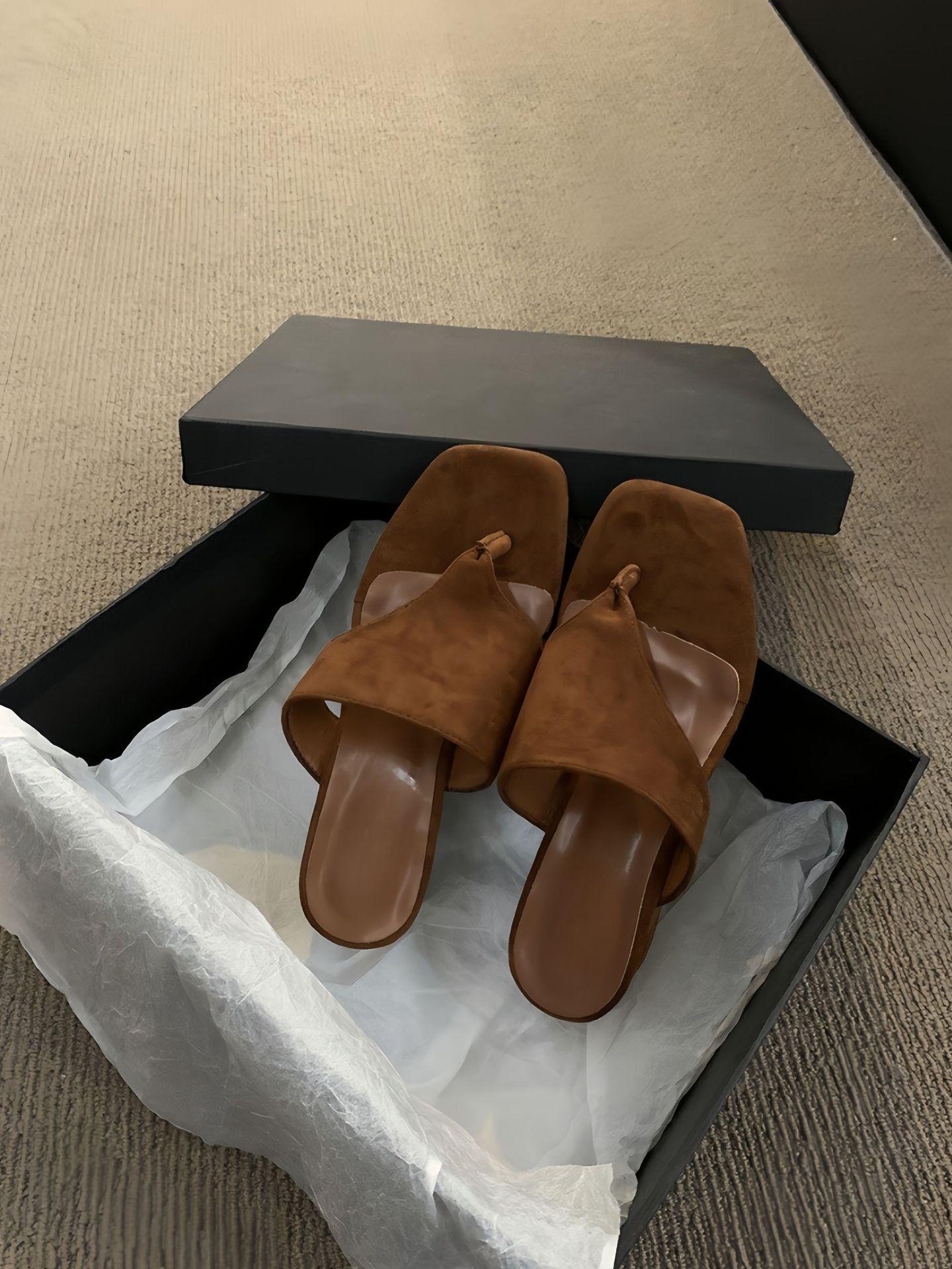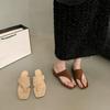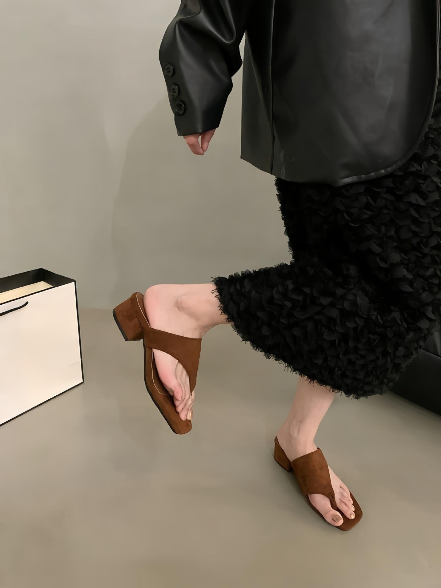 Chanclas de mujer para exterior de verano, elegantes, de ante, estilo hada, diseño retro, con tacón grueso.