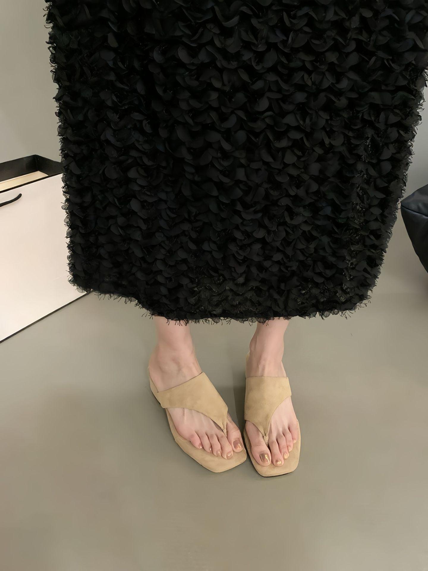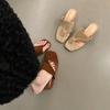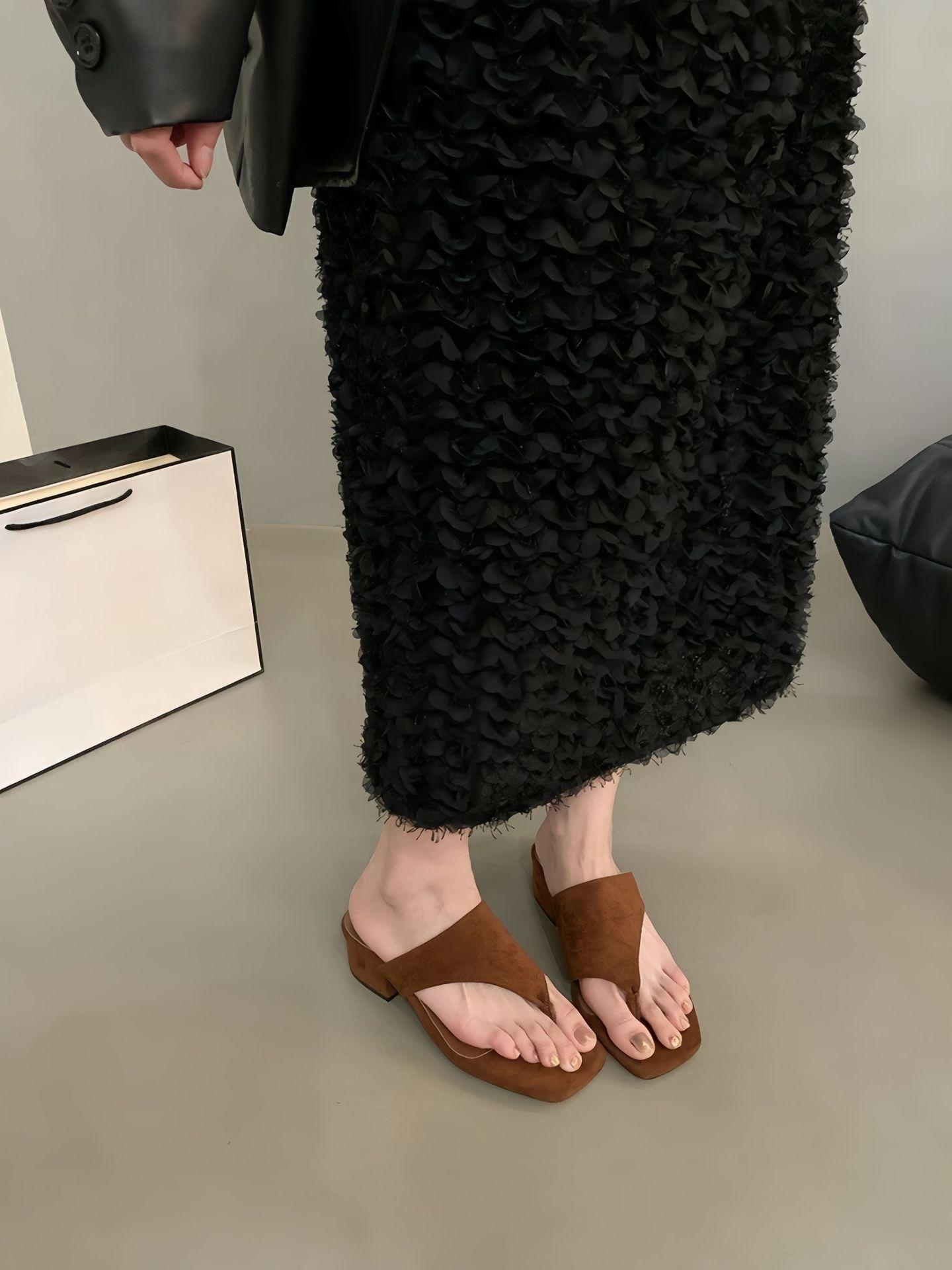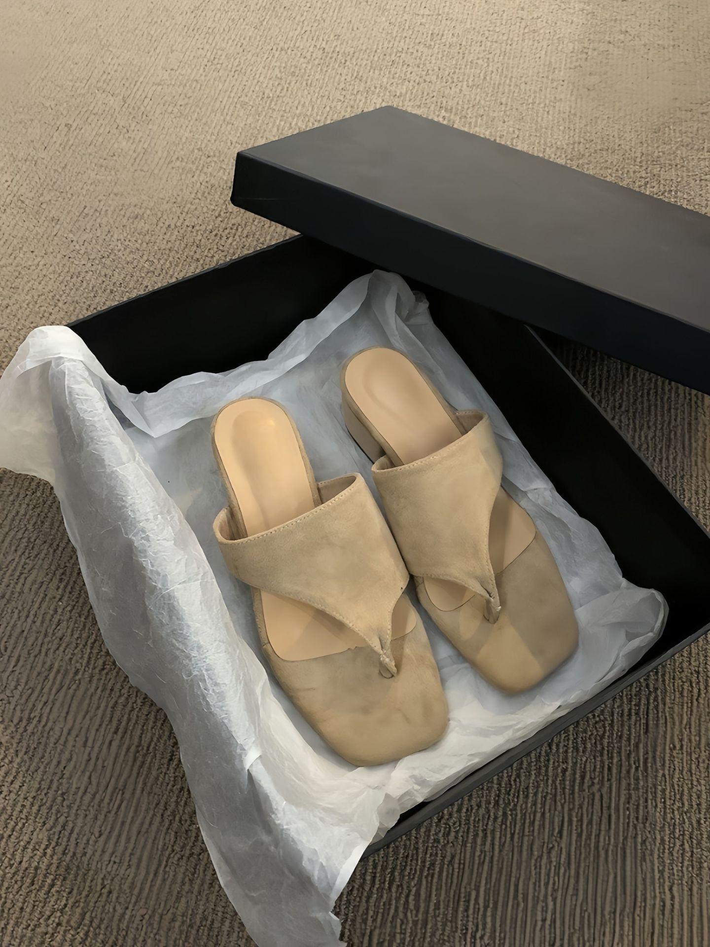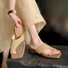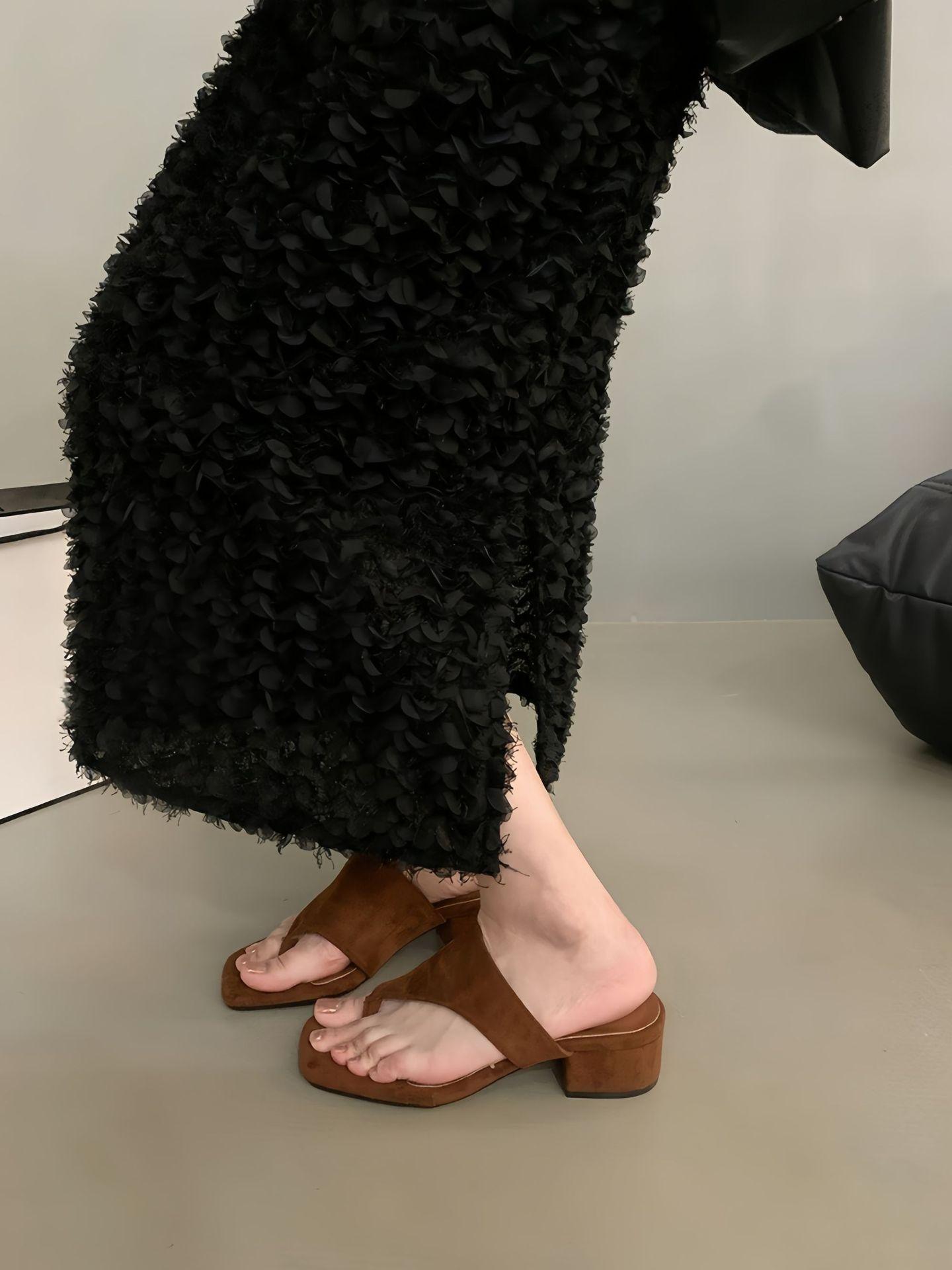 Chanclas de mujer para exterior de verano, elegantes, de ante, estilo hada, diseño retro, con tacón grueso.