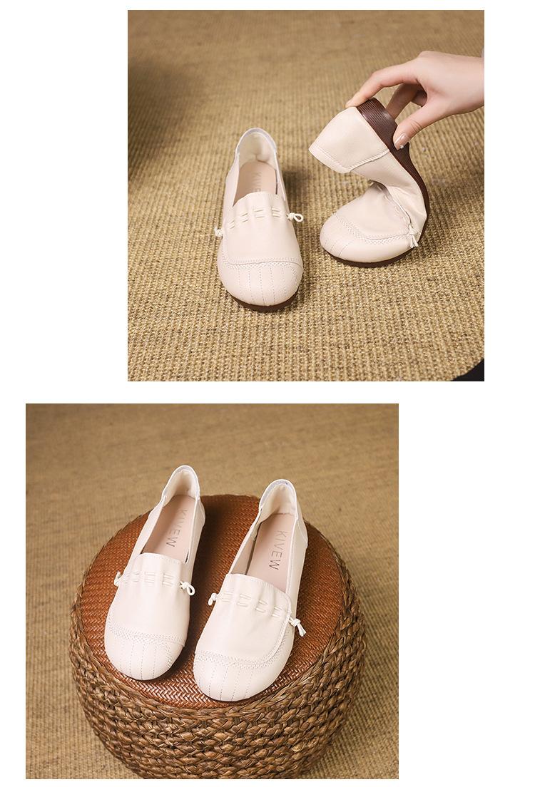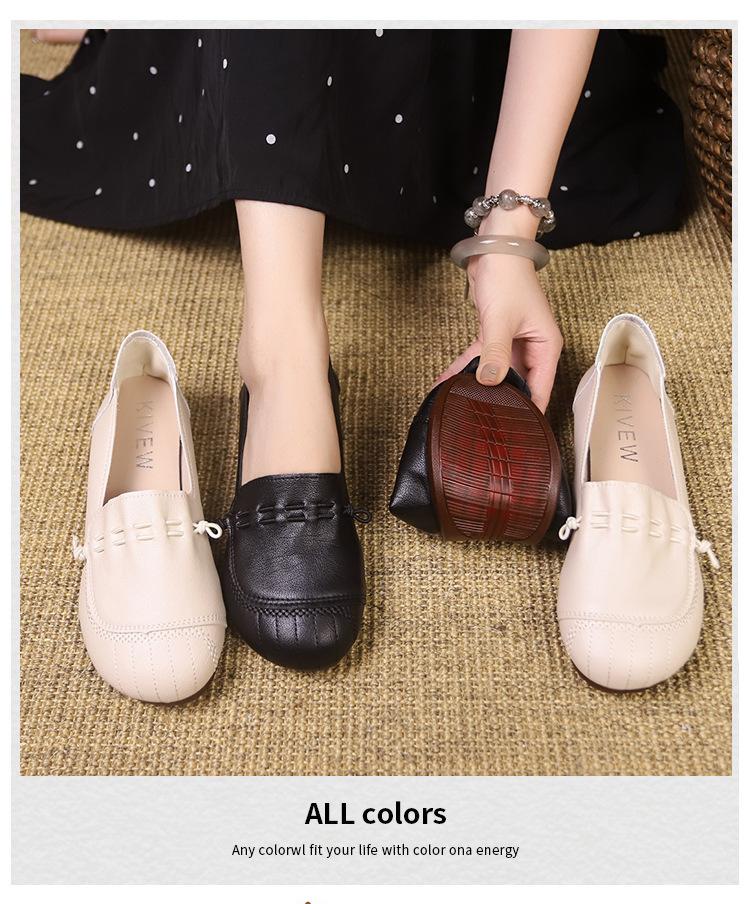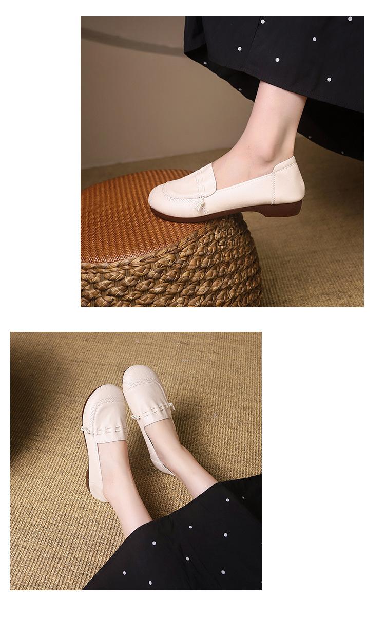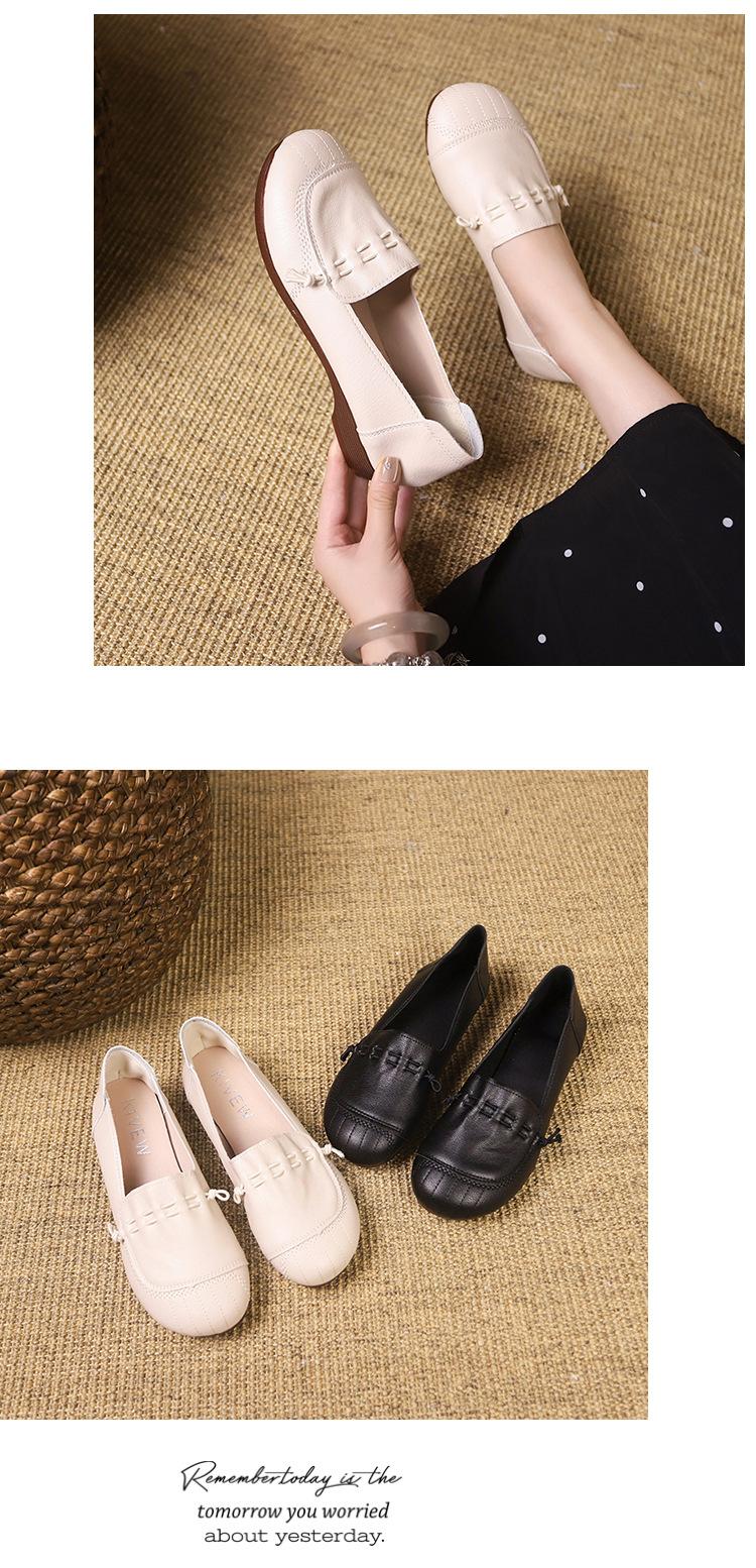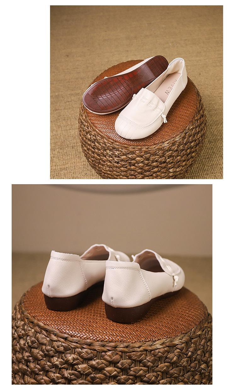 Zapatos retro de suela blanda de una sola capa, cómodos y sin pies cansados, para mujer, otoño 2024, nuevo estilo, sin cordones, planos, con punta redonda, zapatos pequeños de cuero para madres.