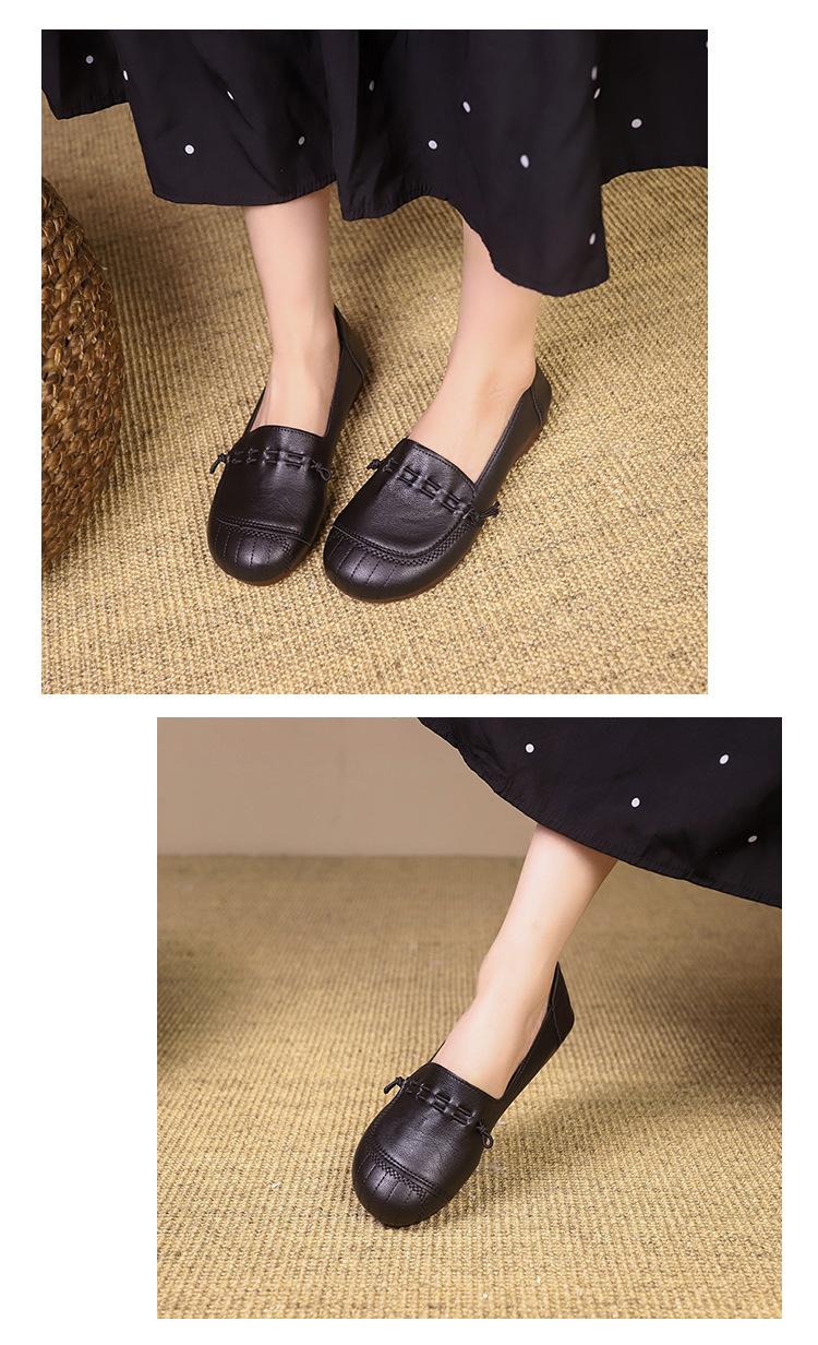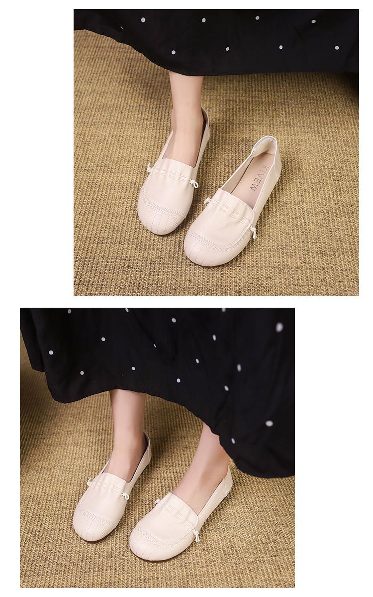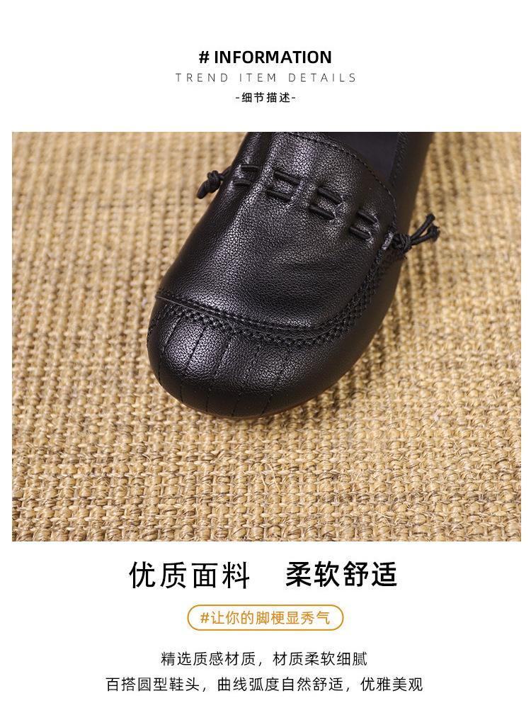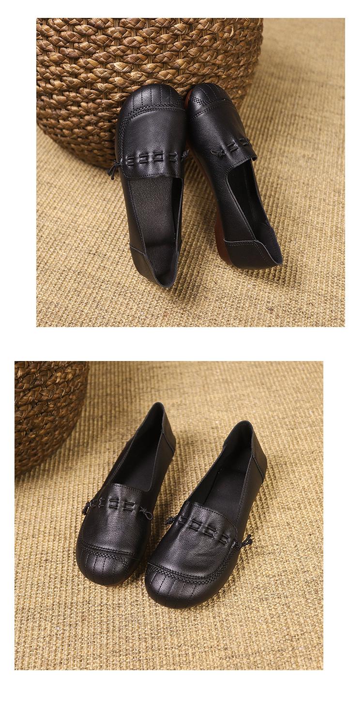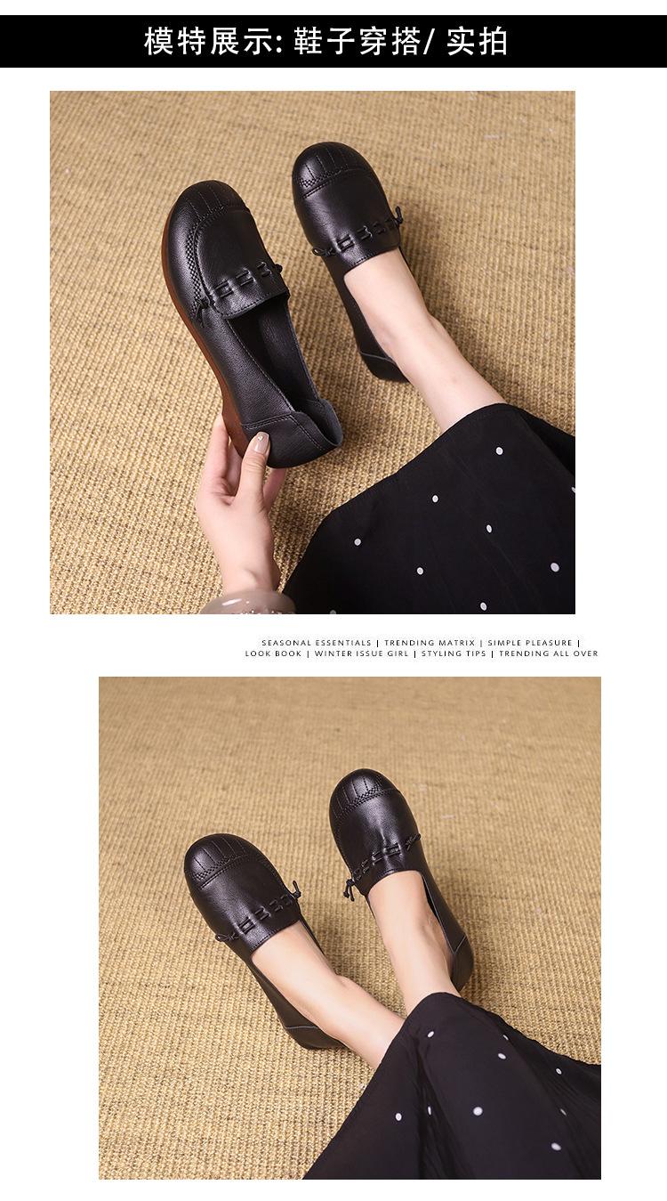 Zapatos retro de suela blanda de una sola capa, cómodos y sin pies cansados, para mujer, otoño 2024, nuevo estilo, sin cordones, planos, con punta redonda, zapatos pequeños de cuero para madres.