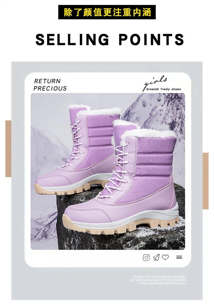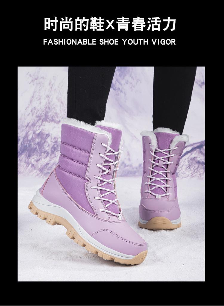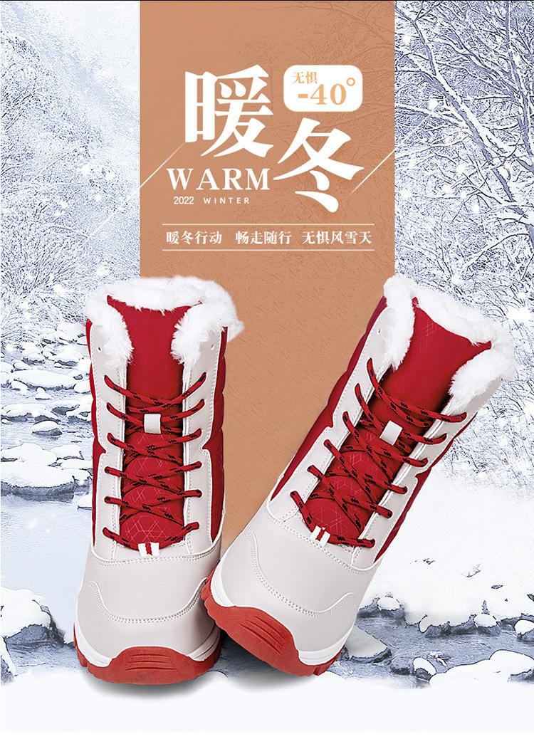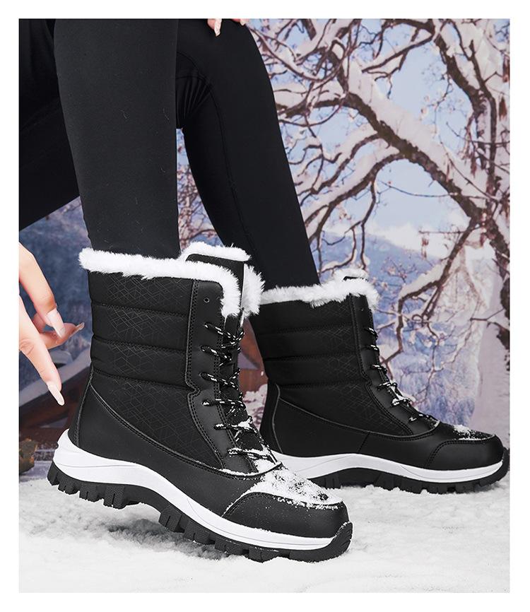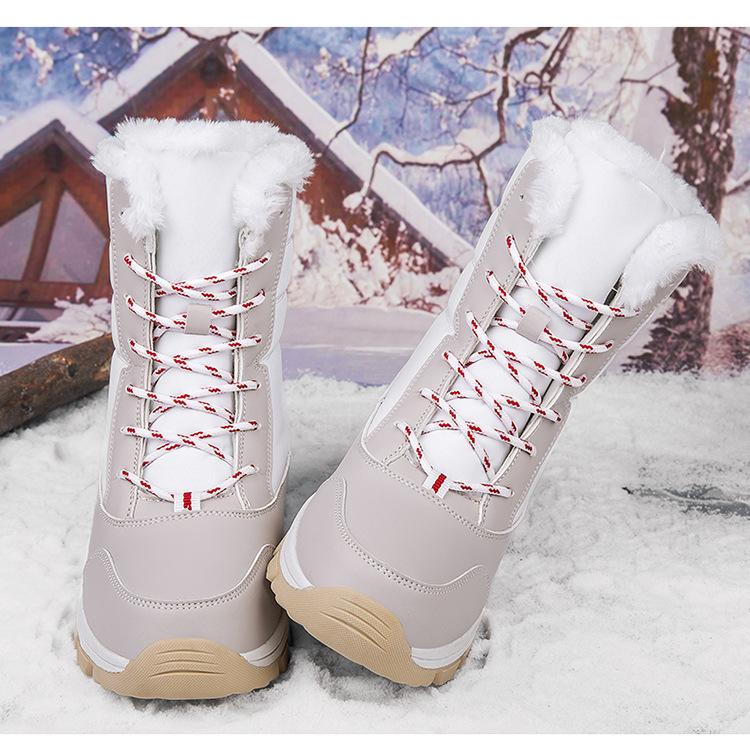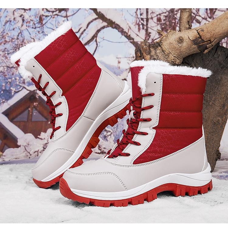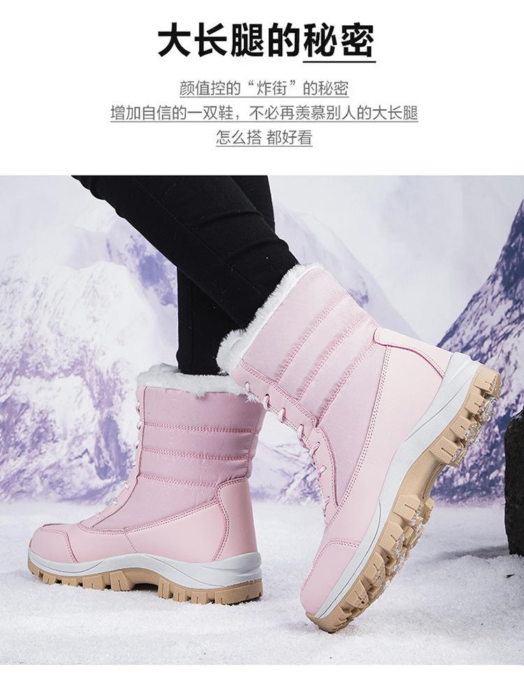 Botas de nieve para mujer, de tubo medio, cálidas, forradas con vellón, gruesas, impermeables, antideslizantes, para invierno, para exteriores, para esquiar en la nieve del noreste, zapatos grandes de algodón para mujer