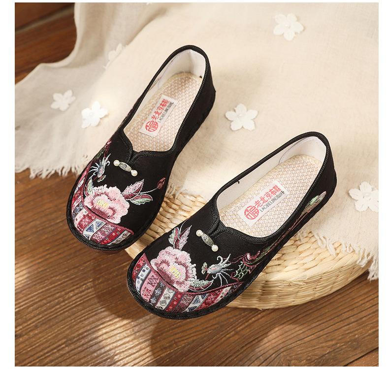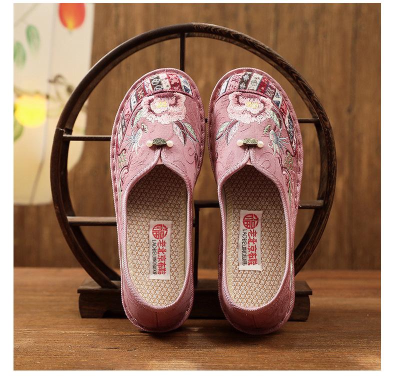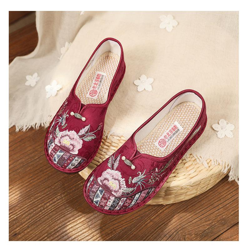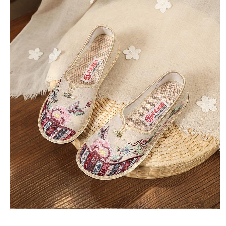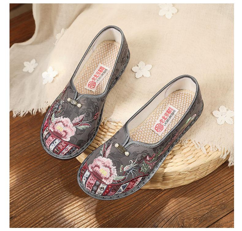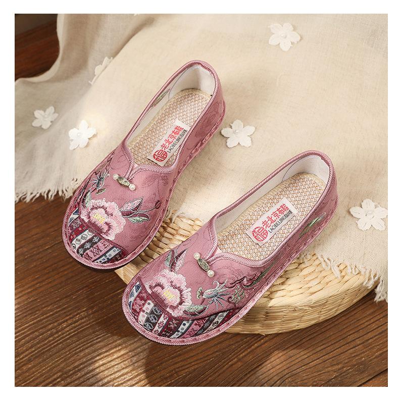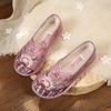 Zapatos de Tela de Pekín Antiguo para Mujer Primavera 2025, Zapatos Bordados de Suela Blanda Plana Transpirable, Cómodos Zapatos Hanfu Bajos para Mujer