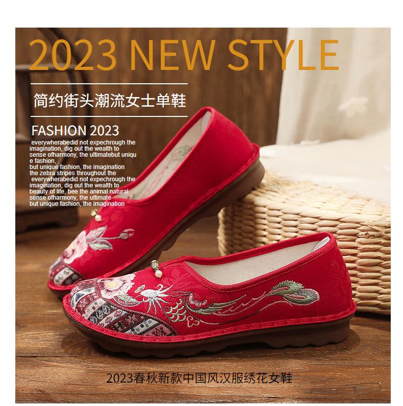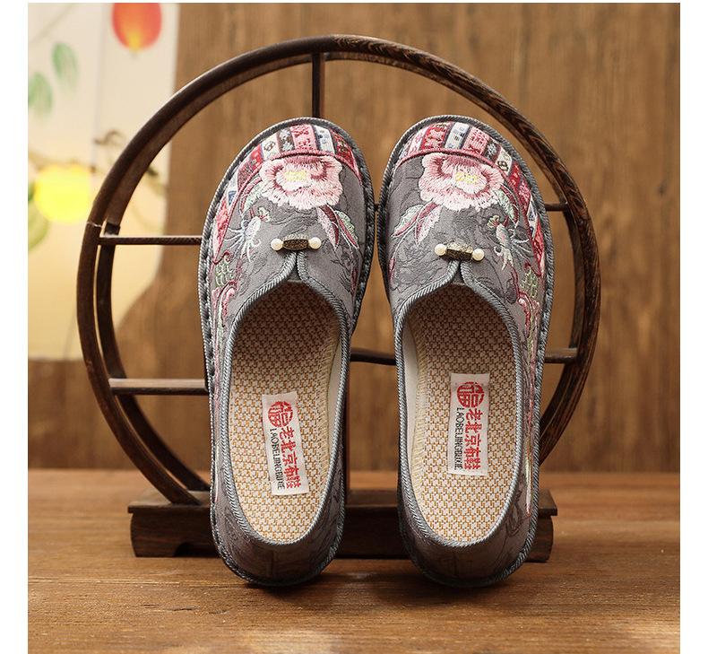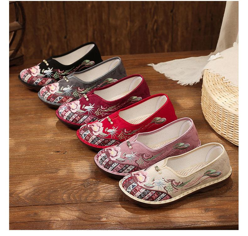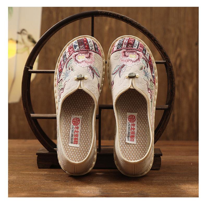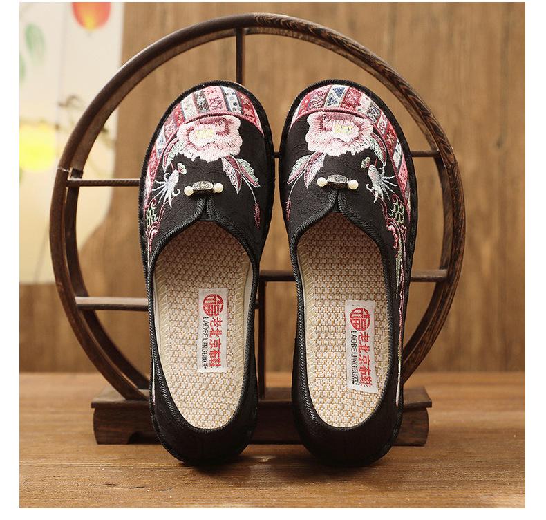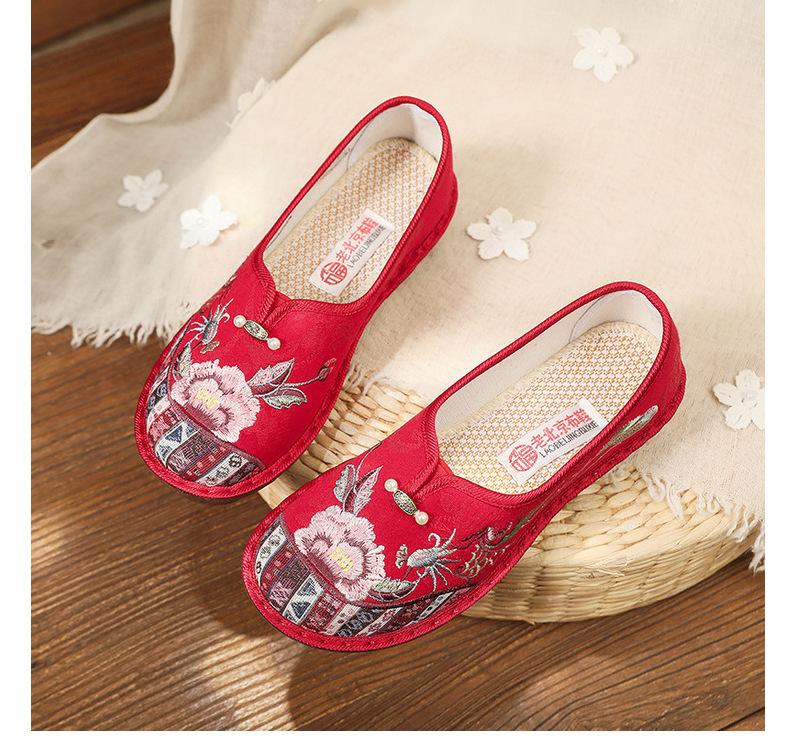 Zapatos de Tela de Pekín Antiguo para Mujer Primavera 2025, Zapatos Bordados de Suela Blanda Plana Transpirable, Cómodos Zapatos Hanfu Bajos para Mujer