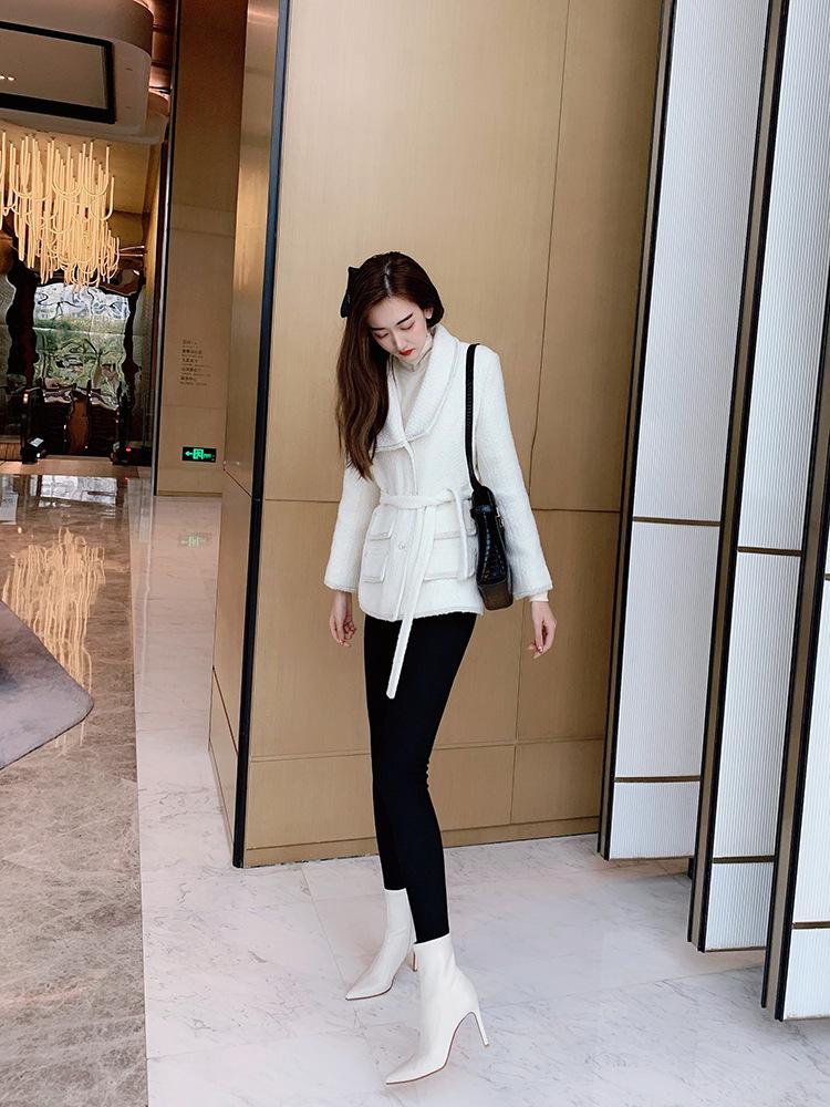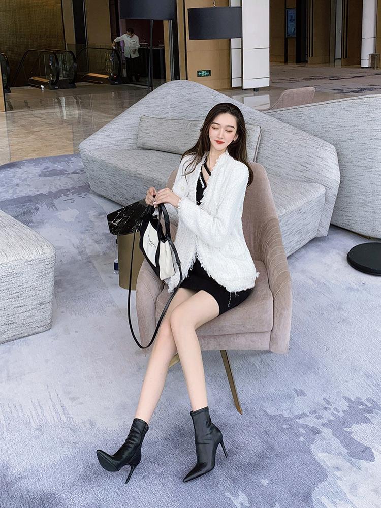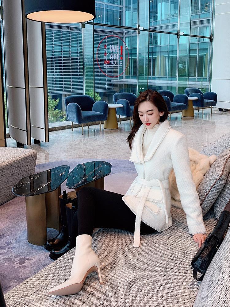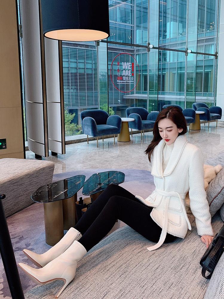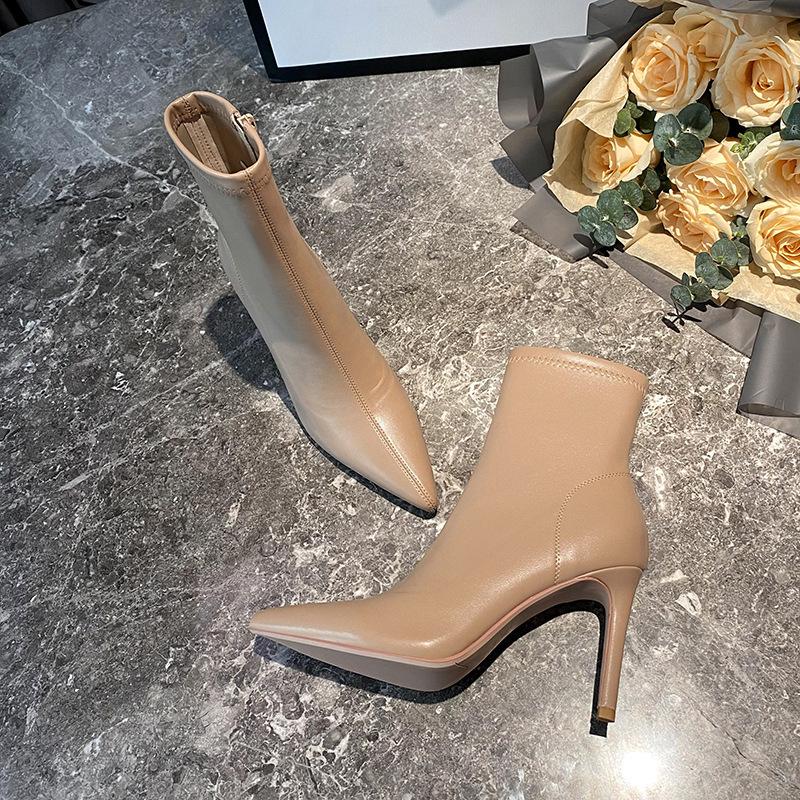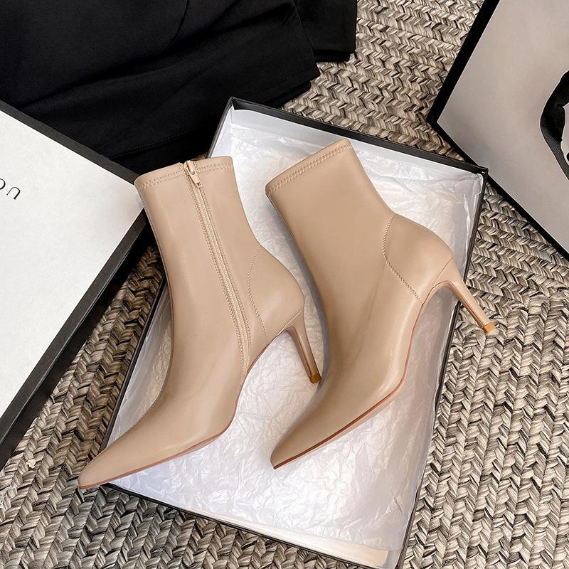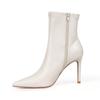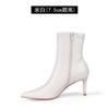 Botas cortas blancas para mujer, otoño e invierno 2024, botas finas con tacón alto y puntiagudo, botas de tacón de aguja francesas, europeas y americanas, color blanco arroz.