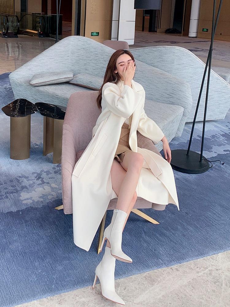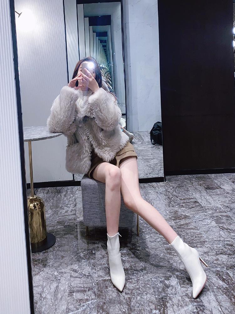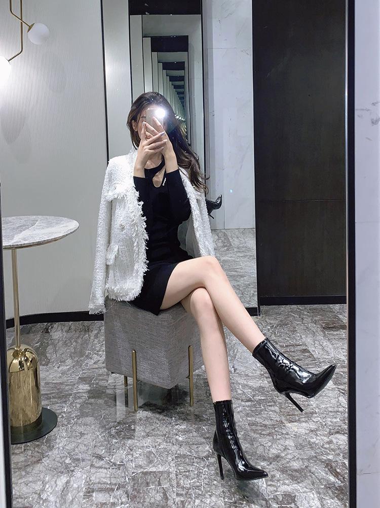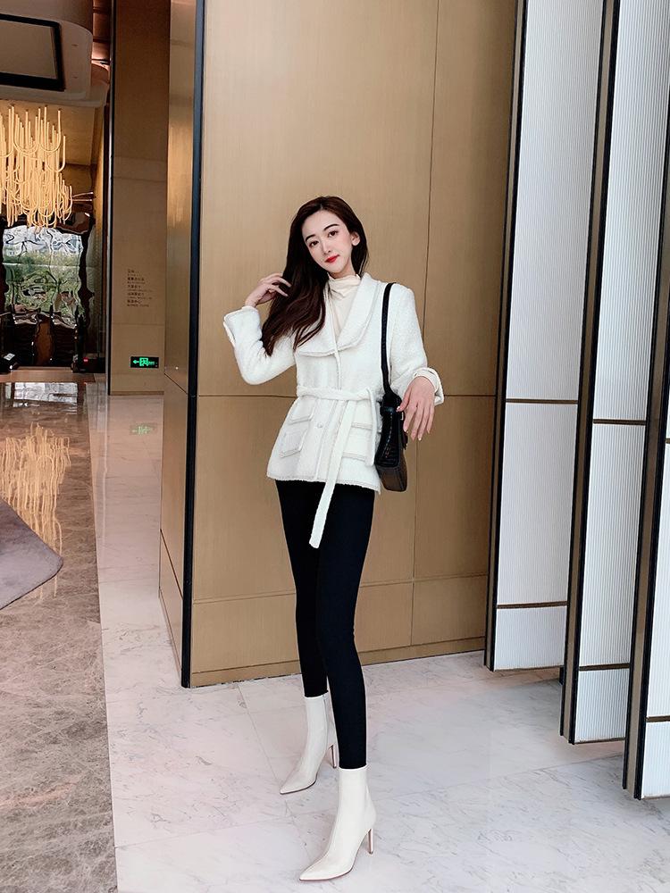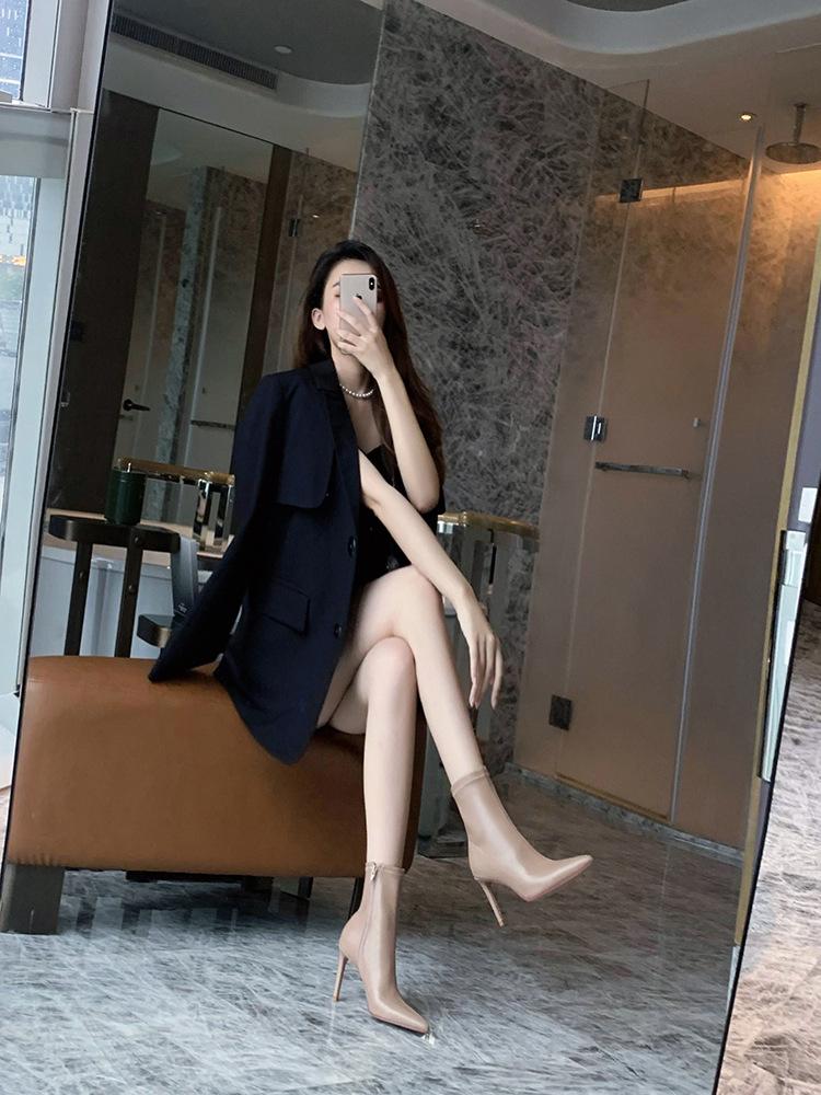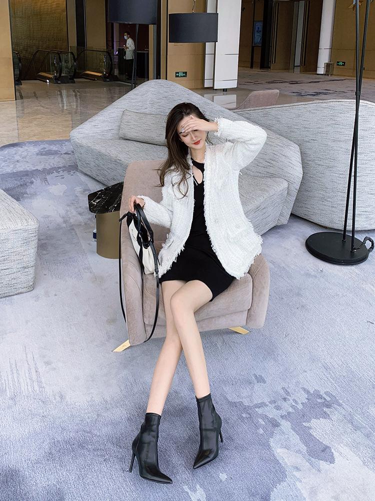 Botas cortas blancas para mujer, otoño e invierno 2024, botas finas con tacón alto y puntiagudo, botas de tacón de aguja francesas, europeas y americanas, color blanco arroz.