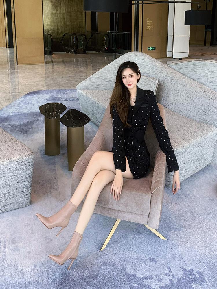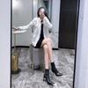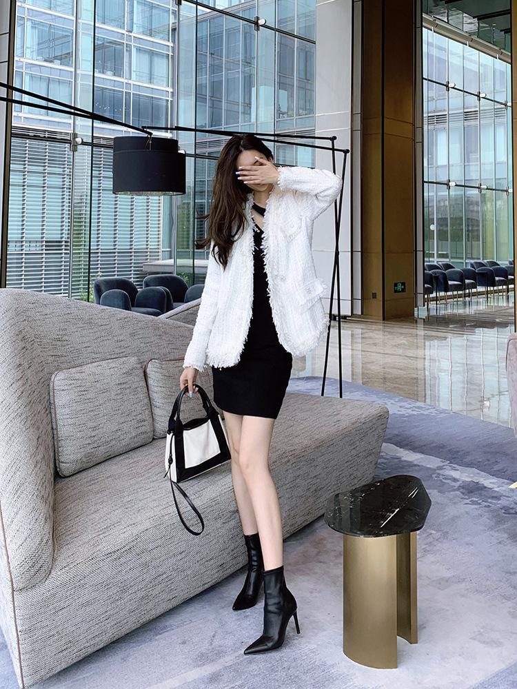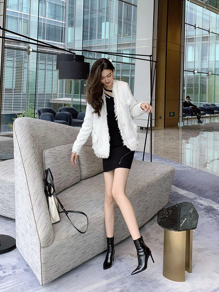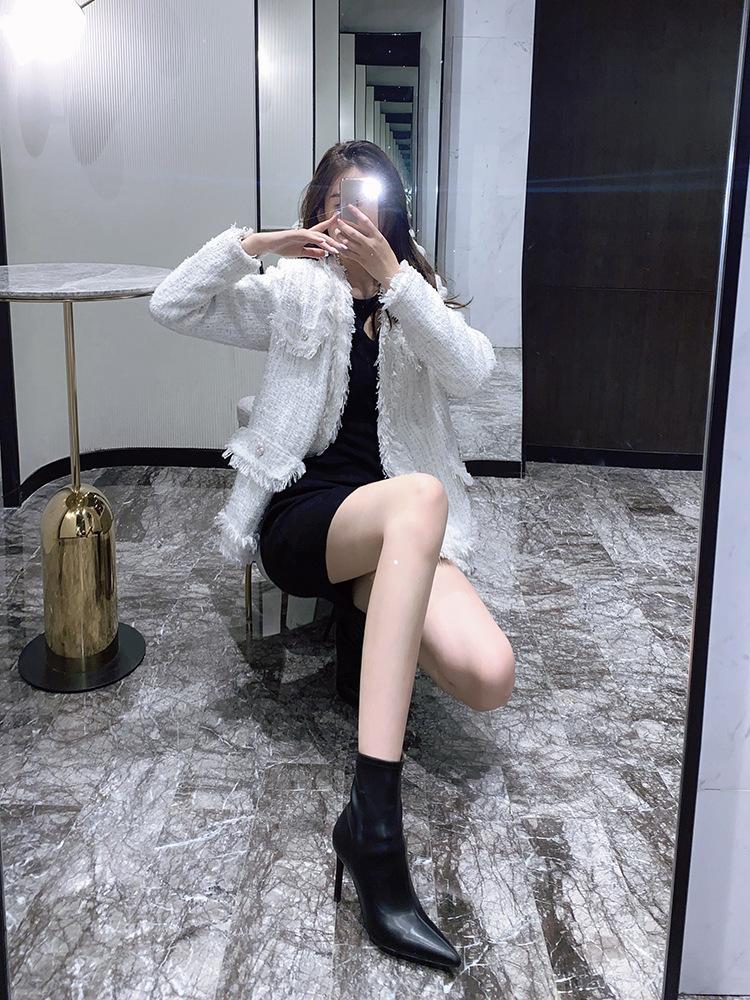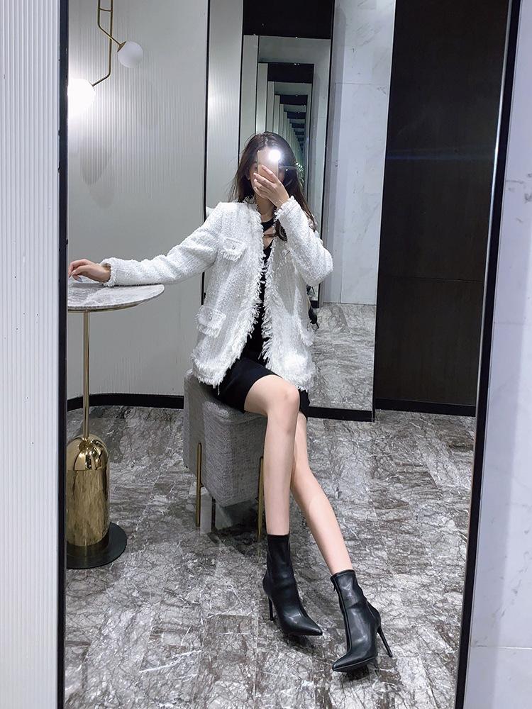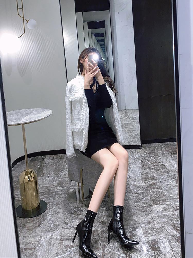 Botas cortas blancas para mujer, otoño e invierno 2024, botas finas con tacón alto y puntiagudo, botas de tacón de aguja francesas, europeas y americanas, color blanco arroz.