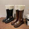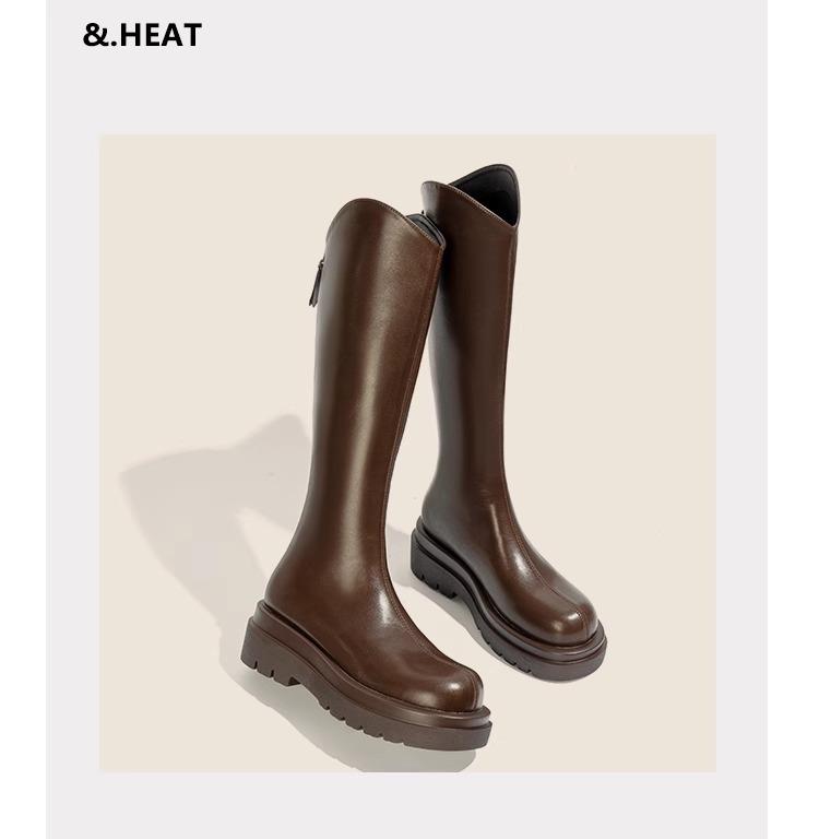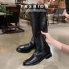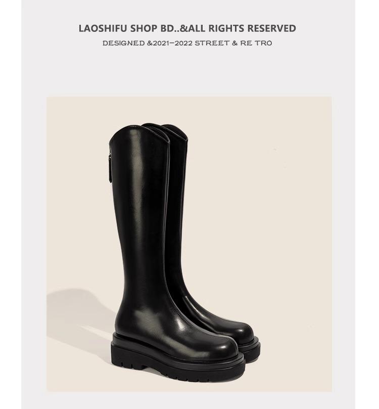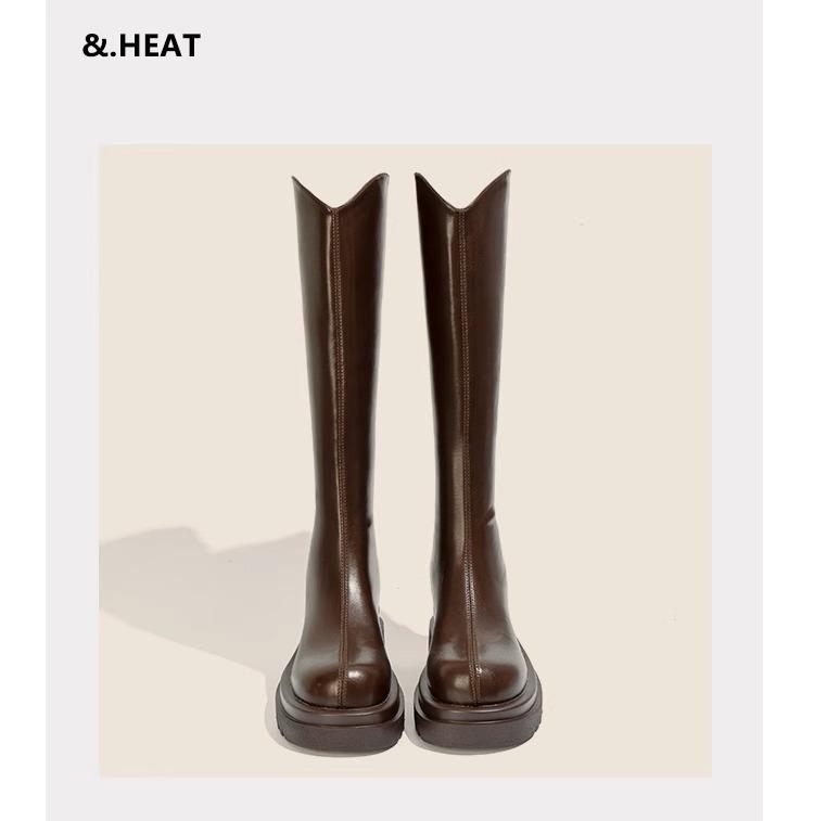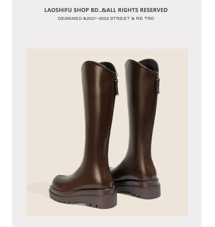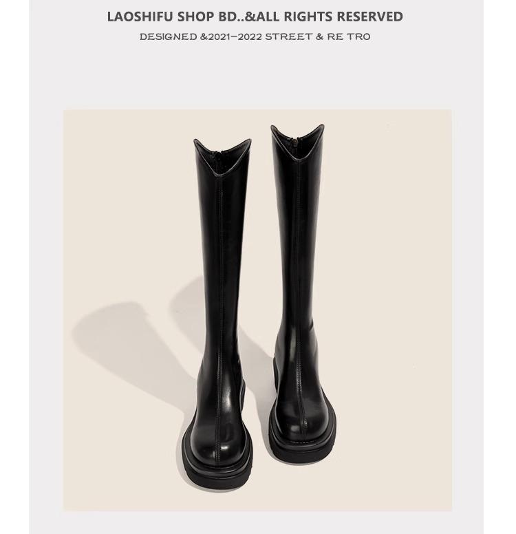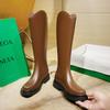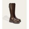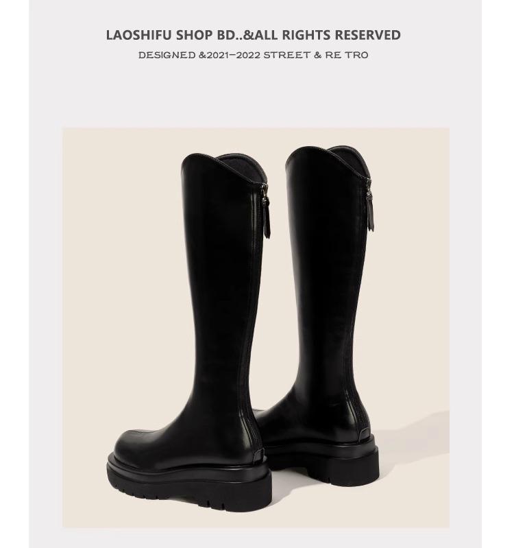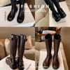 Botas largas de piel auténtica con boca en V para mujer, otoño e invierno 2024, nuevas botas ajustadas, botas largas, botas altas de suela gruesa y pequeña, botas de caballero