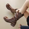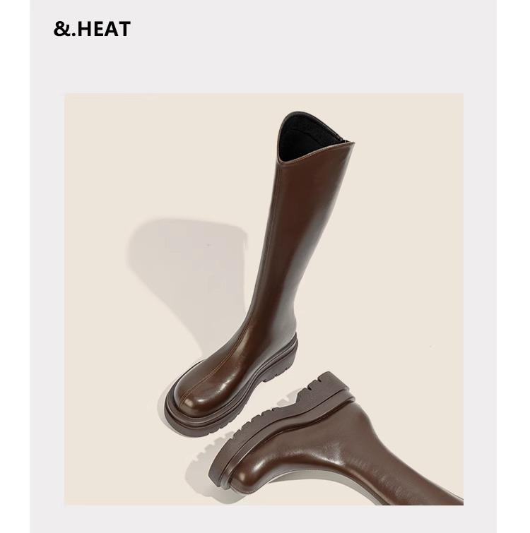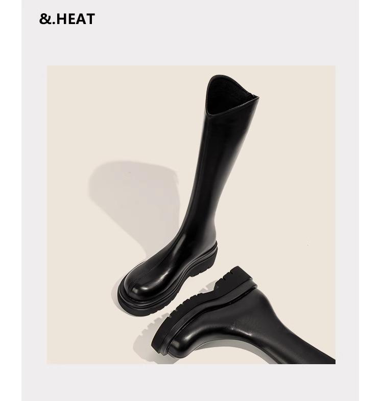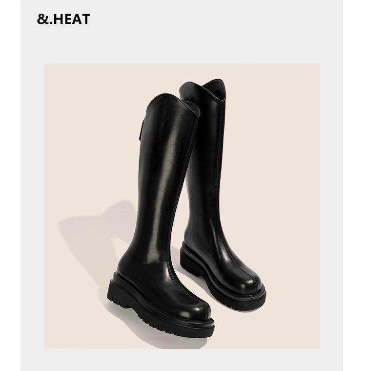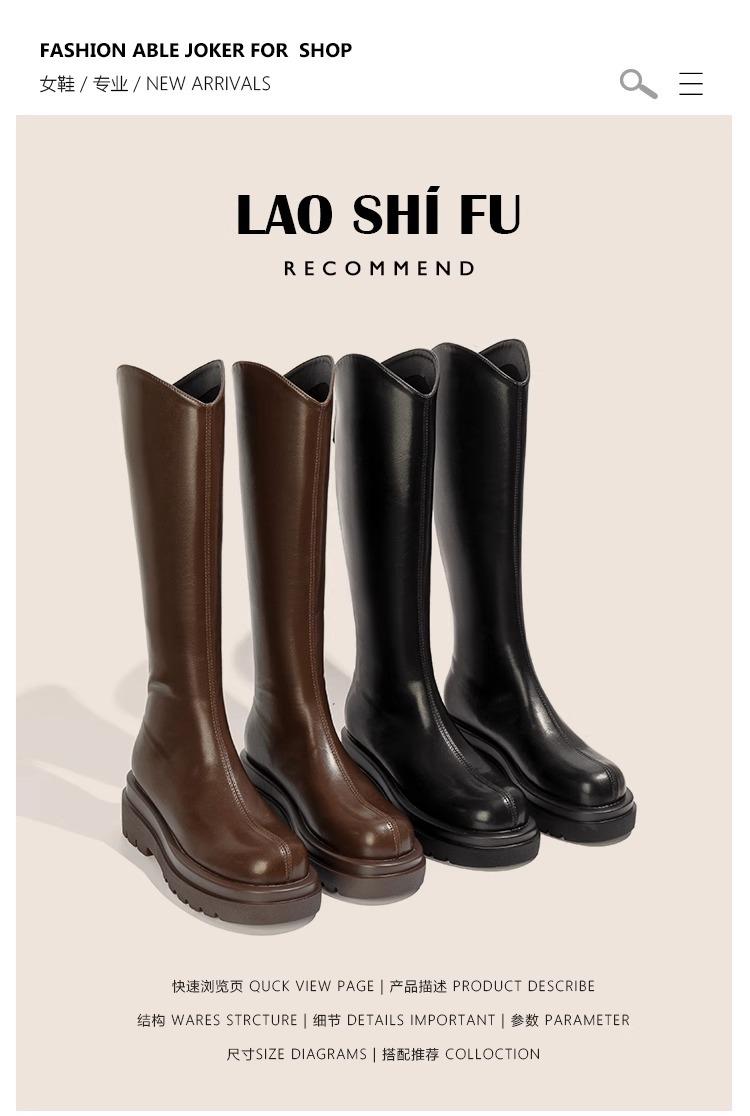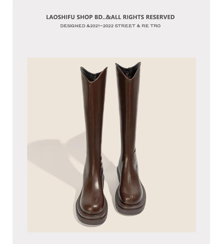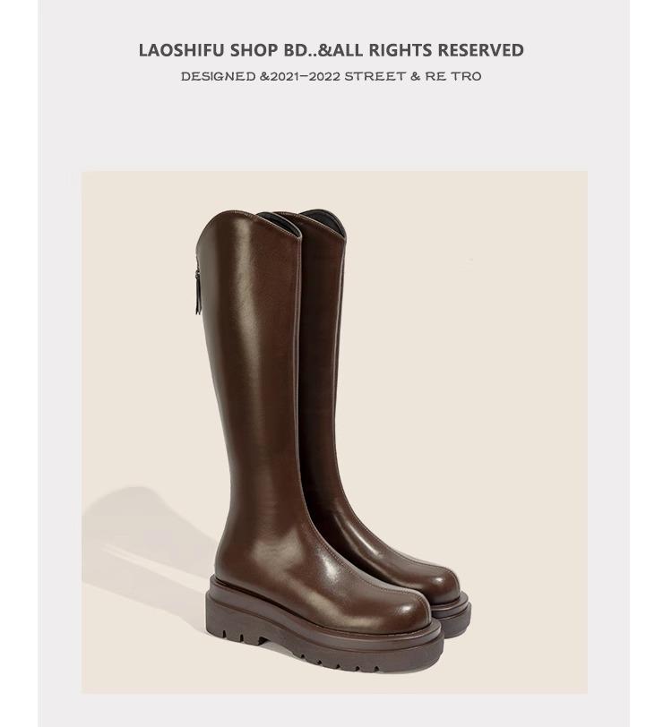 Botas largas de piel auténtica con boca en V para mujer, otoño e invierno 2024, nuevas botas ajustadas, botas largas, botas altas de suela gruesa y pequeña, botas de caballero