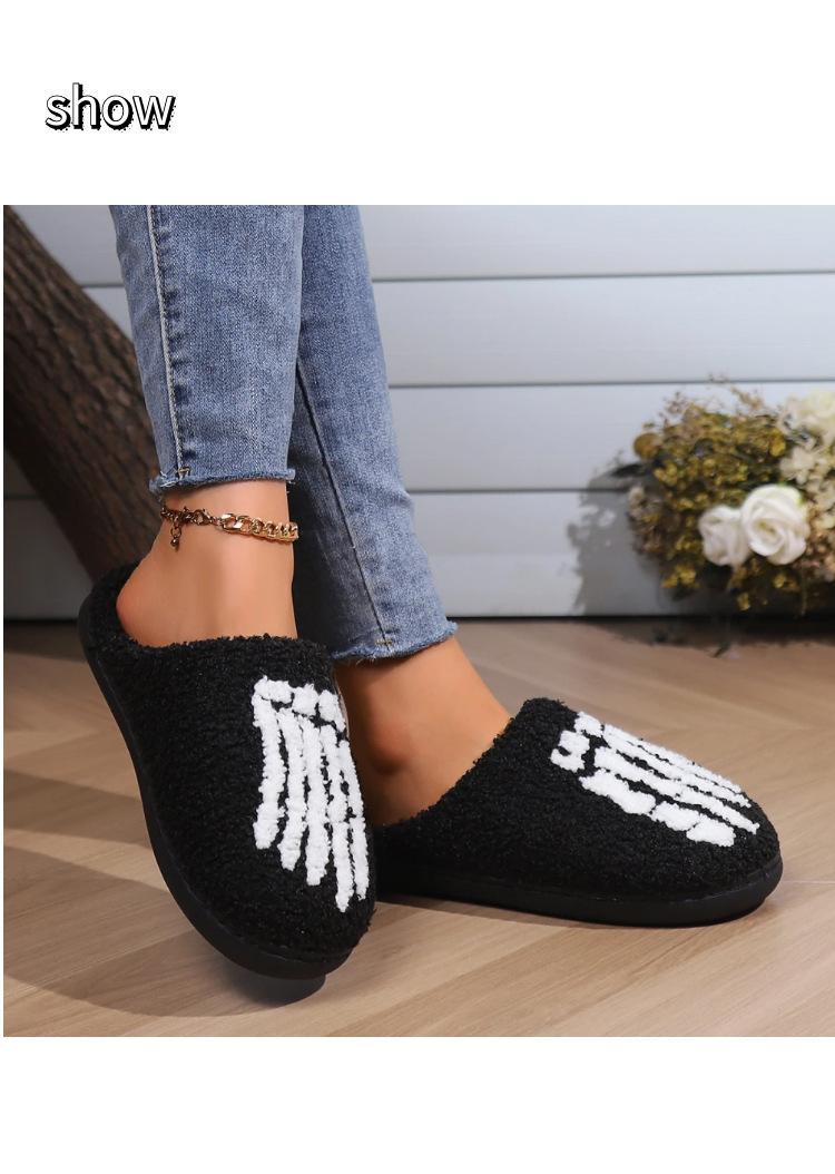 Pantuflas Peludas de Halloween para Casa, Pantuflas de Algodón Antideslizantes con Forma de Pata y Punta Cerrada, Pantuflas de Algodón Cálidas y Felpudas para el Calor del Hogar