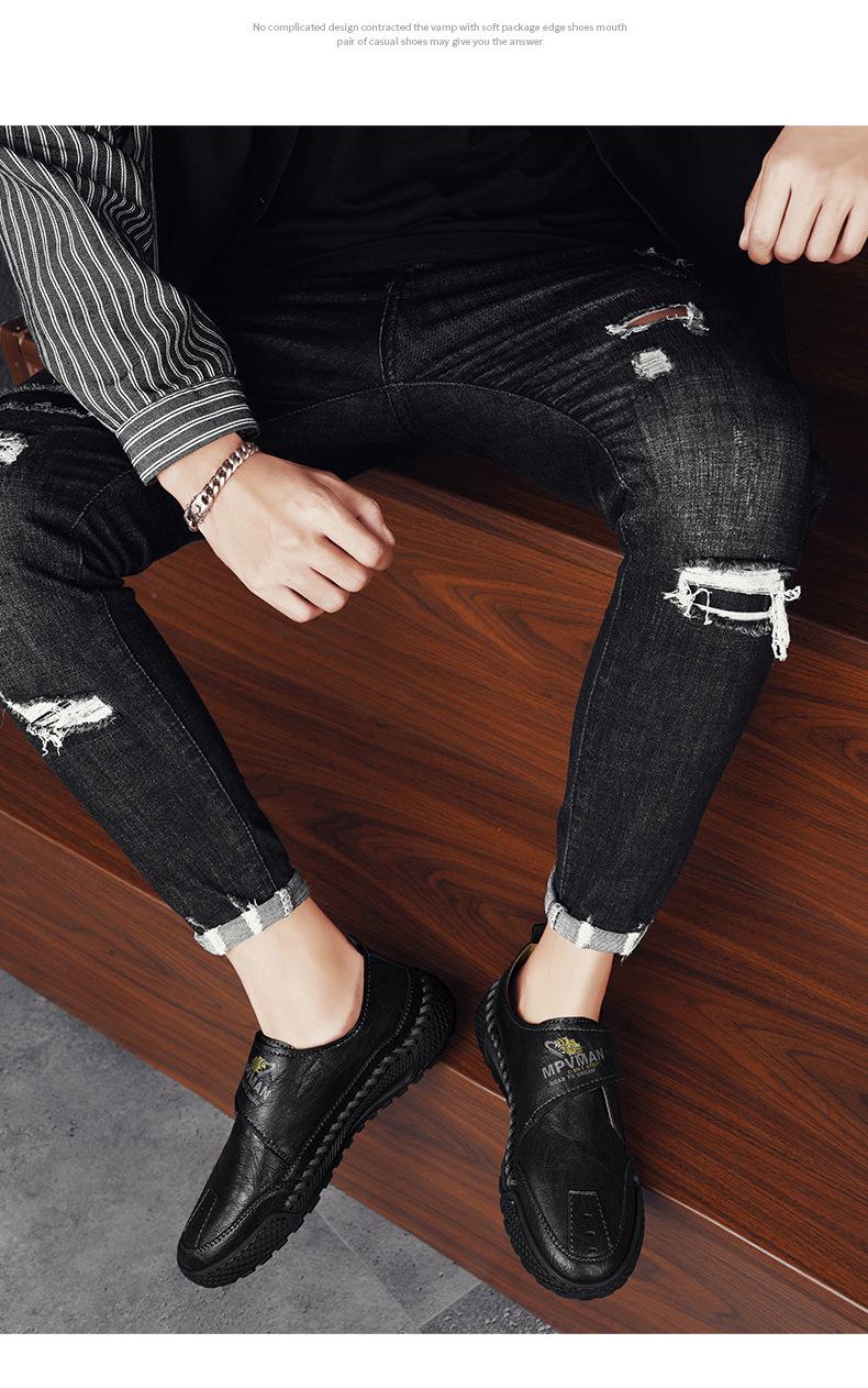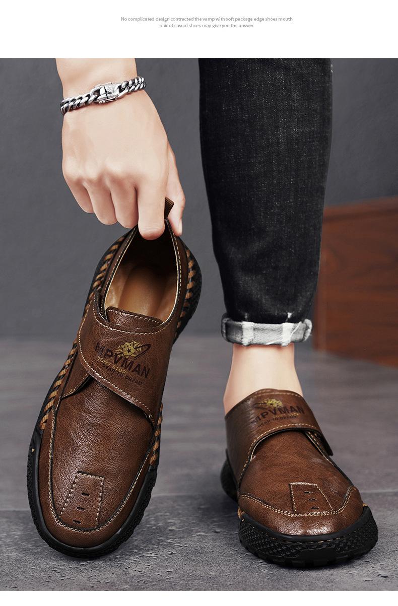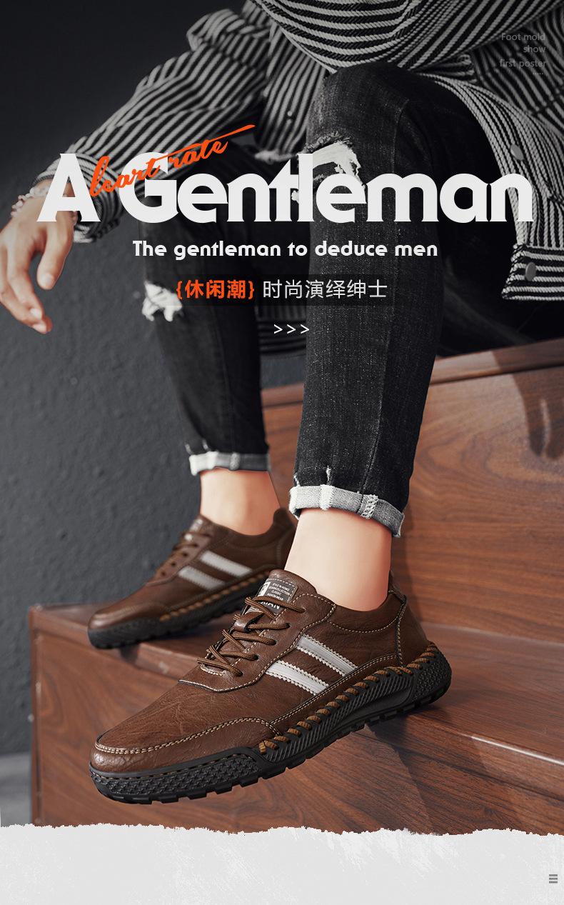 Zapatos de hombre nuevos de otoño e invierno cosidos a mano, zapatos casuales con explosión en vivo, zapatos de cuero para hombre, zapatos de papá de talla grande baja