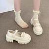 Zapatos de cuero estilo francés con lazo y tacón grueso para mujer, invierno 2024, nuevos zapatos de una sola capa con velcro, estilo británico, combinables con todo.