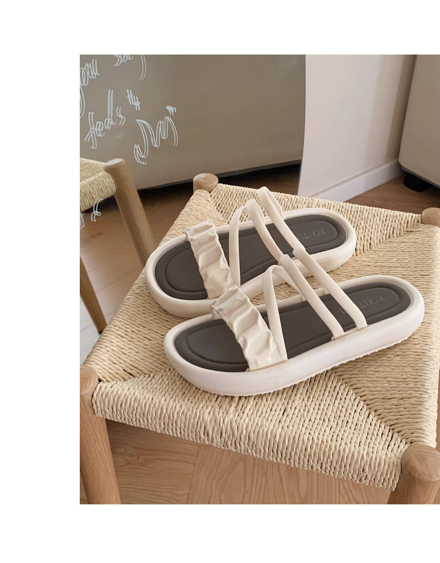 Nueva Celebridad de Internet Ropa de Exterior Sandalias y Pantuflas de Playa Junto al Mar Combinación de Colores Estilo Coreano 2025 Nuevas Pantuflas Simples de Verano para Mujer