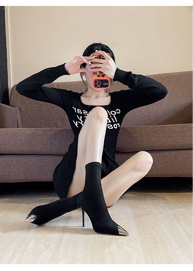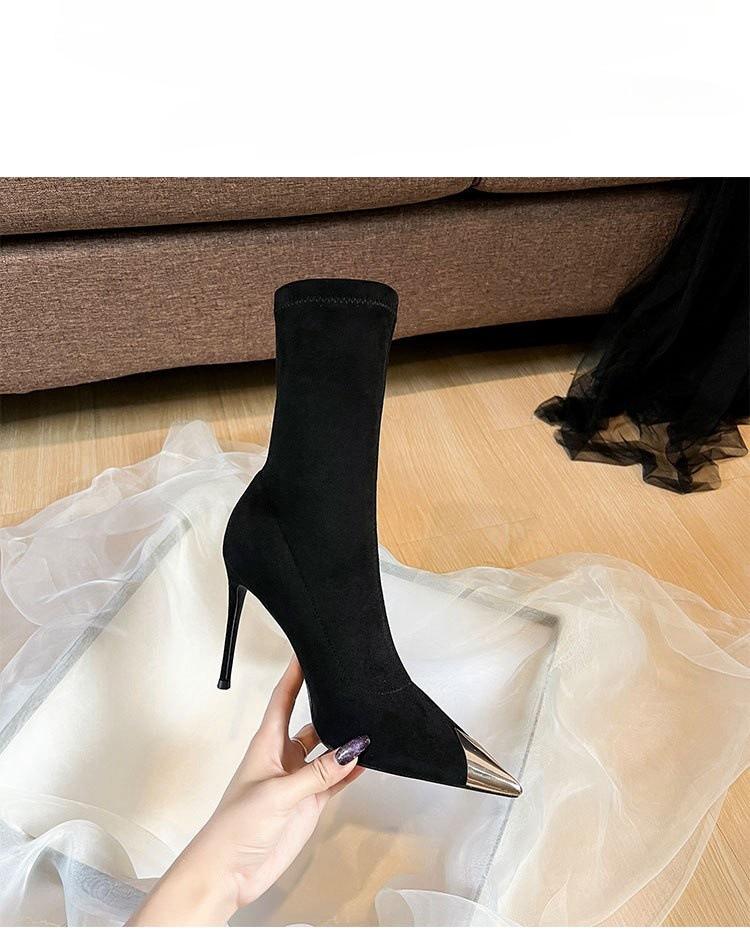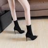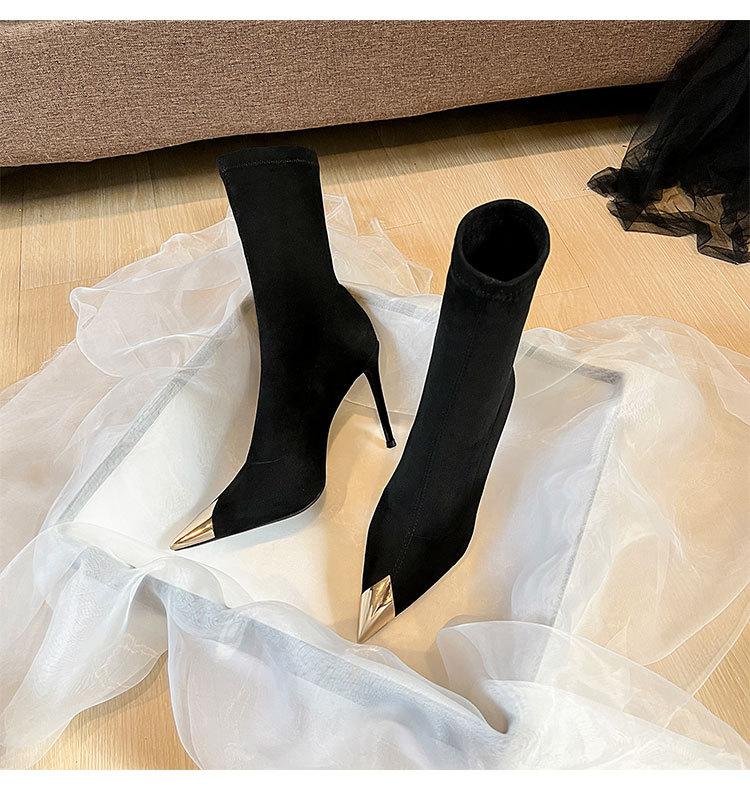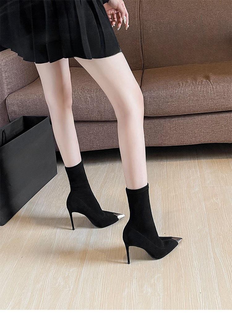 Compra Botas cortas negras de tacón alto y punta puntiaguda para mujer, otoño e invierno 2024, nuevas botas elásticas ajustadas, botas hasta la mitad de la pantorrilla, botas individuales. al por mayor en Joom.pro
