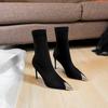 Botas cortas negras de tacón alto y punta puntiaguda para mujer, otoño e invierno 2024, nuevas botas elásticas ajustadas, botas hasta la mitad de la pantorrilla, botas individuales.