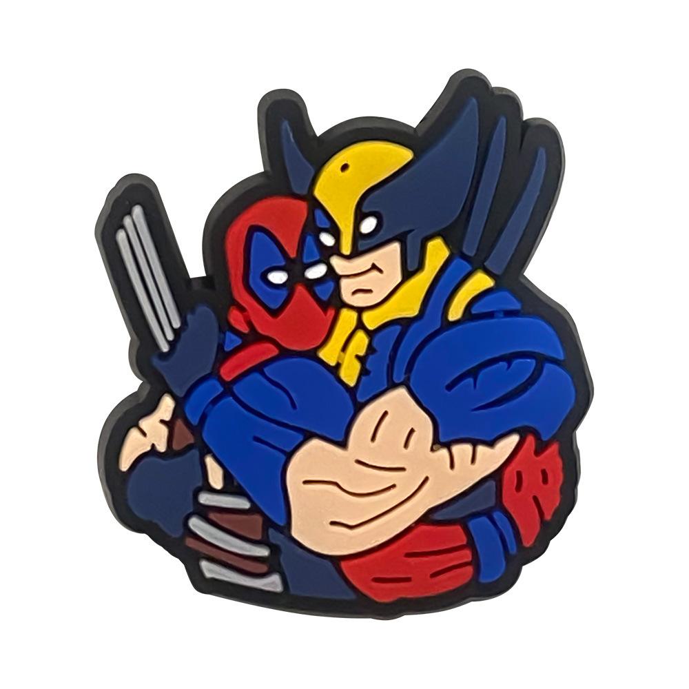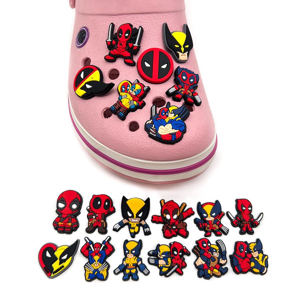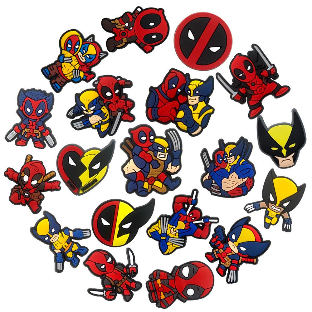 19 traje Marvel zapato flor hebilla zapato dibujos animados Deadpool Wolverine agujero zapato flor accesorios goma suave DIY zapato accesorios
