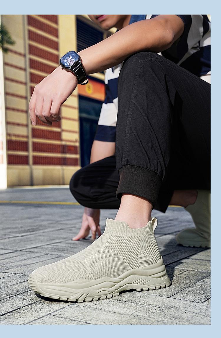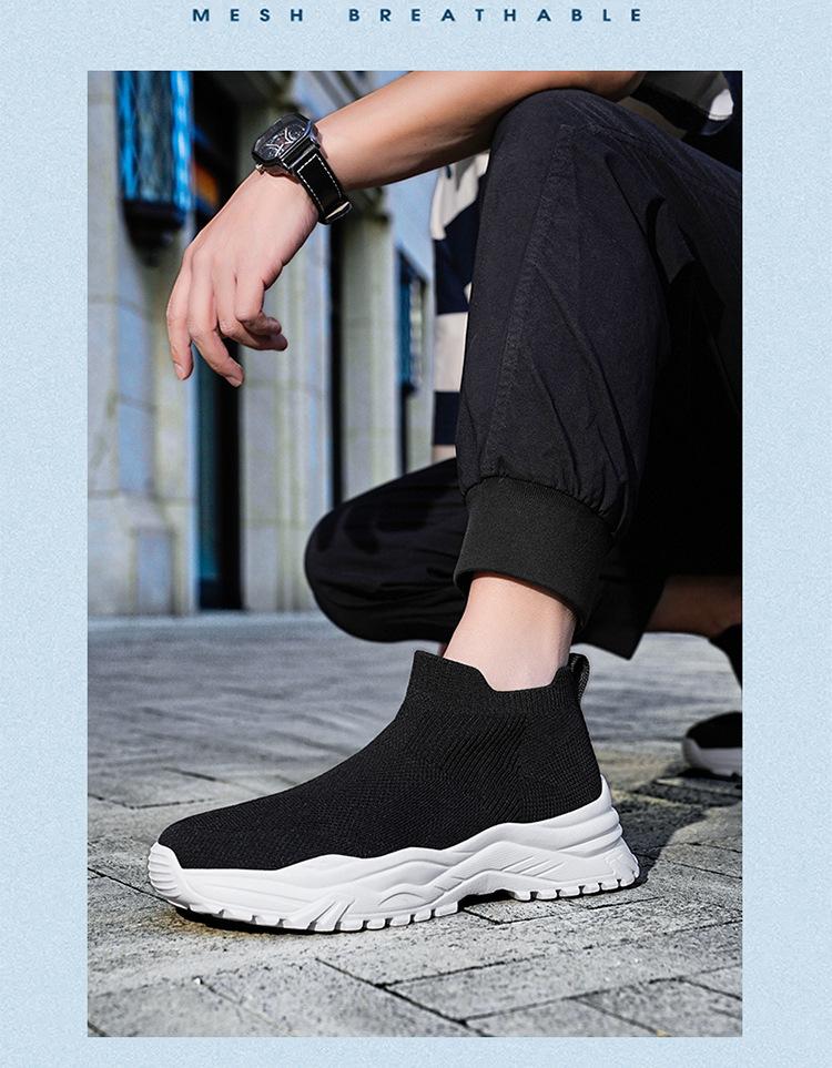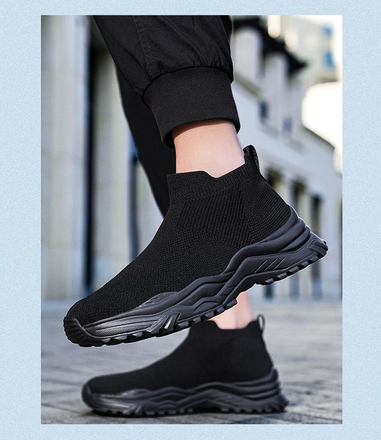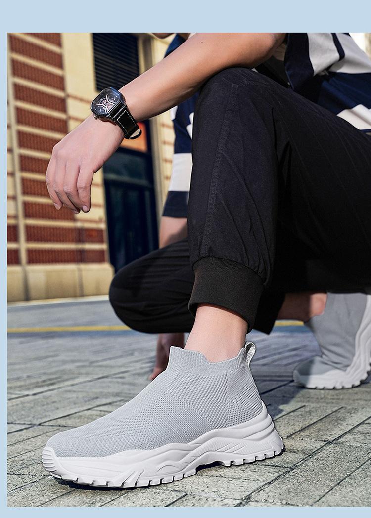 Deportes al Aire Libre Zapatos de Hombre Primavera y Verano Tejido Volador Zapatos Casuales Slip-on Calcetines Zapatos Zapatillas para Correr Cómodos Zapatos de Tablero de Caña Alta Talla Grande