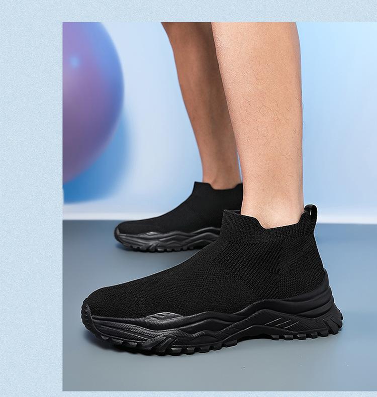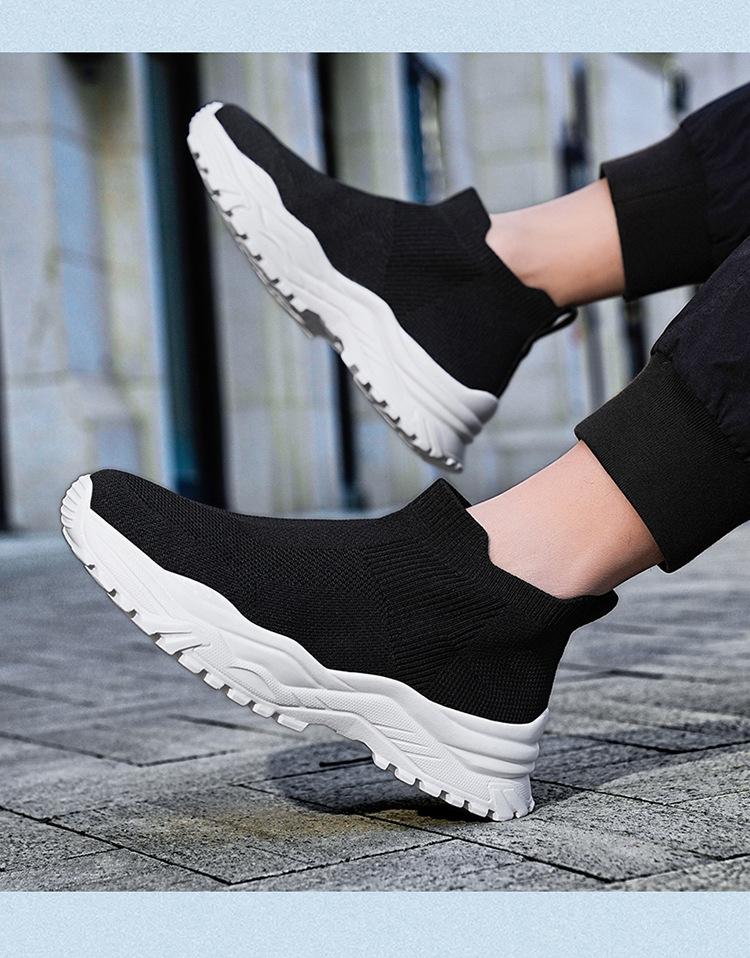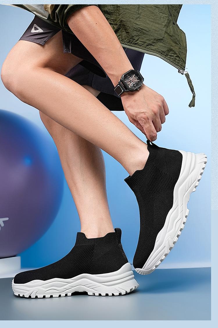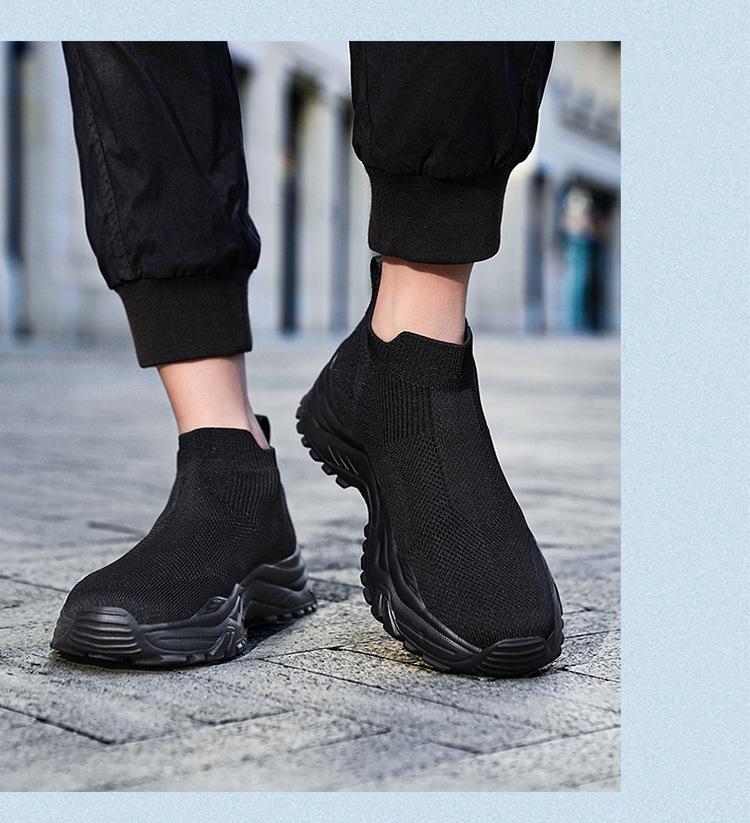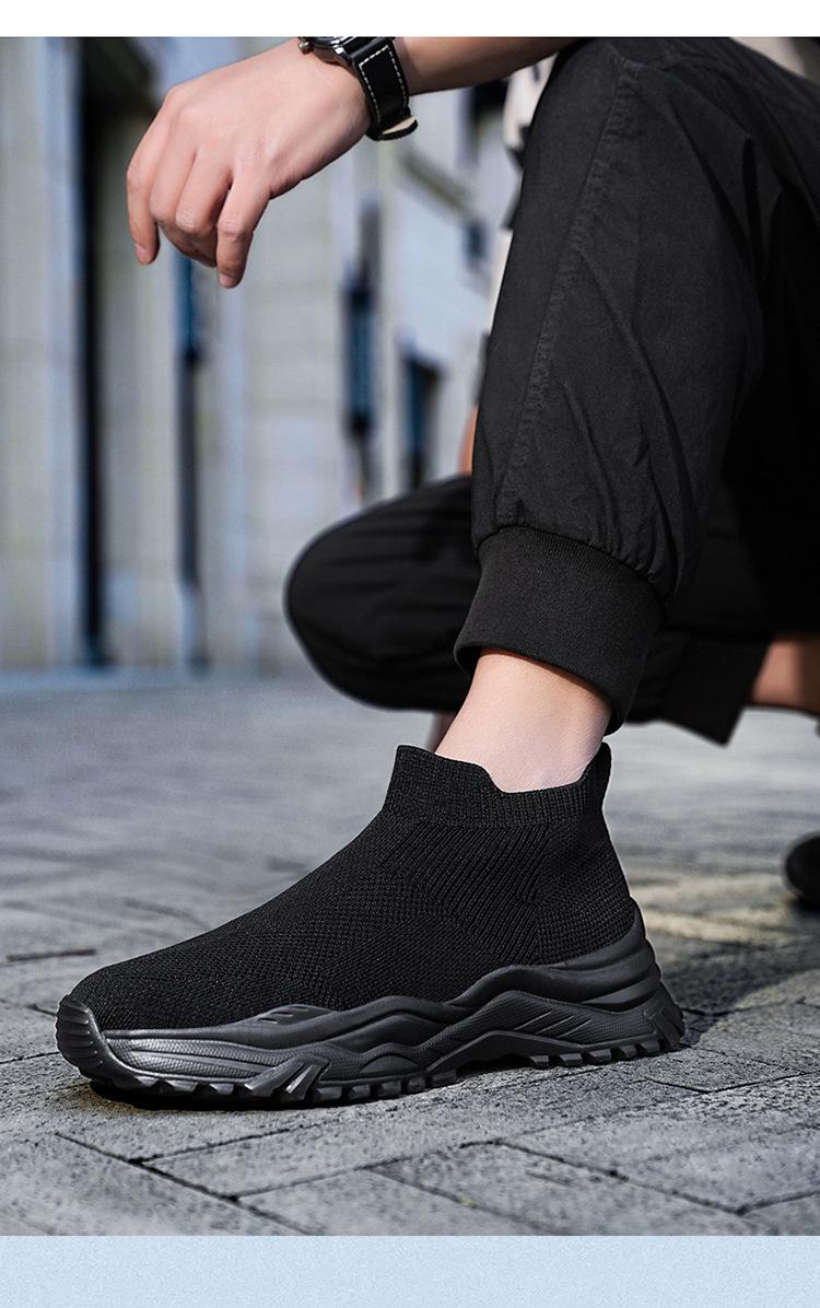 Deportes al Aire Libre Zapatos de Hombre Primavera y Verano Tejido Volador Zapatos Casuales Slip-on Calcetines Zapatos Zapatillas para Correr Cómodos Zapatos de Tablero de Caña Alta Talla Grande