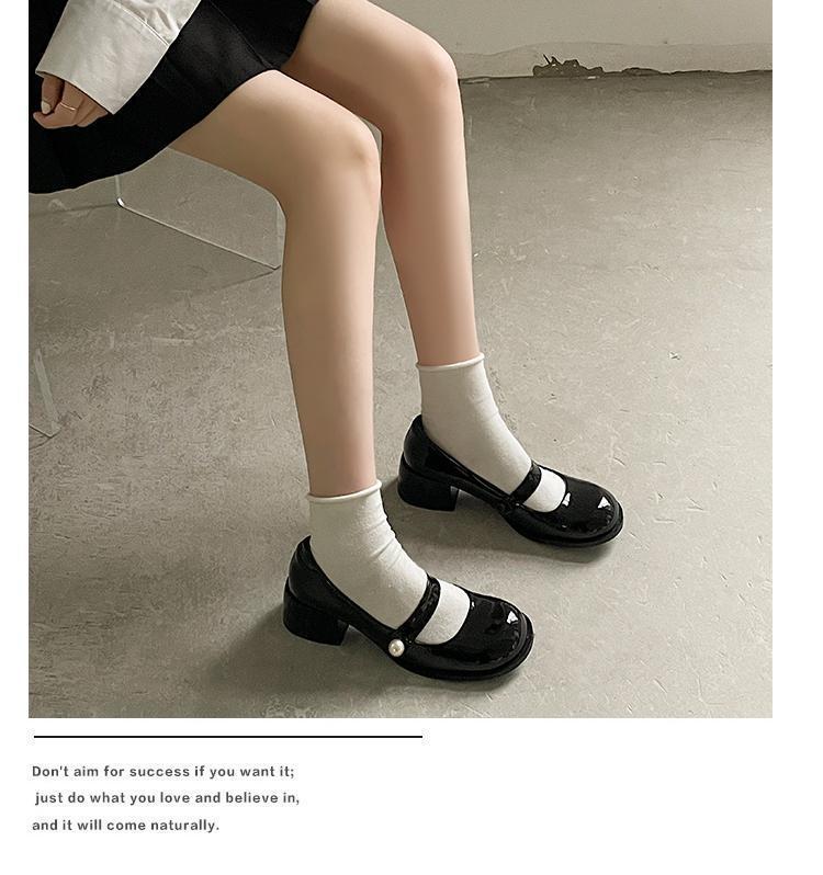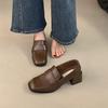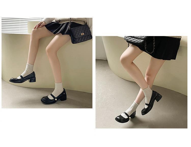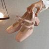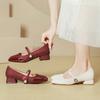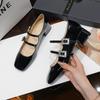 Zapatos de Mujer Mary Jane con Hebilla Retro Francesa de Moda 2025 Punta Redonda Tacón Grueso de Gama Alta Zapatos de Cuero Pequeños Boca Baja