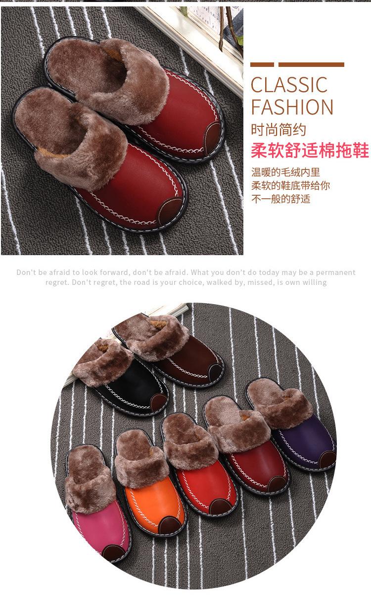 Fabricantes mayoreo cuero genuino zapatos de pareja para hombre y mujer para interior del hogar zapatillas de algodón cálidas para interior invierno más zapatillas de terciopelo