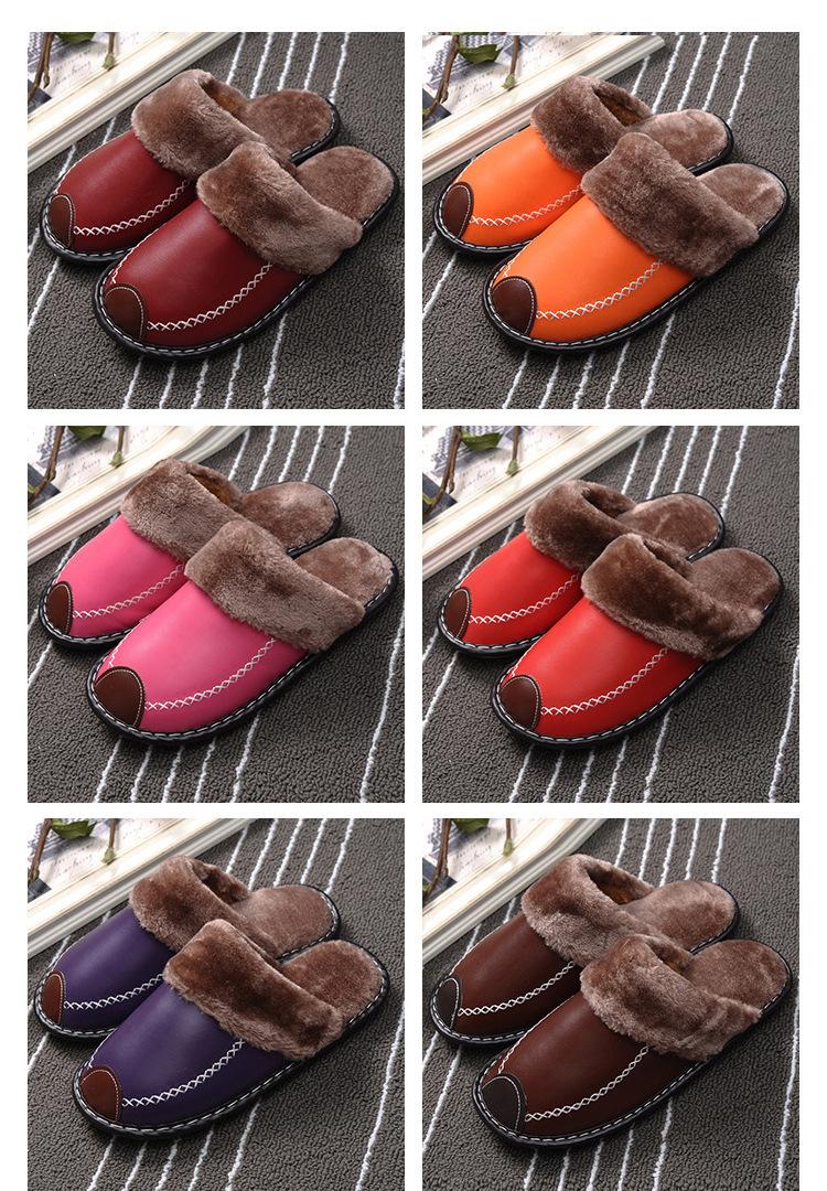 Pantuflas de invierno de cuero genuino para hombre y mujer para el hogar, para interiores, impermeables, para pareja, con forro de piel de vaca peluda, algodón, con suelas gruesas para invierno