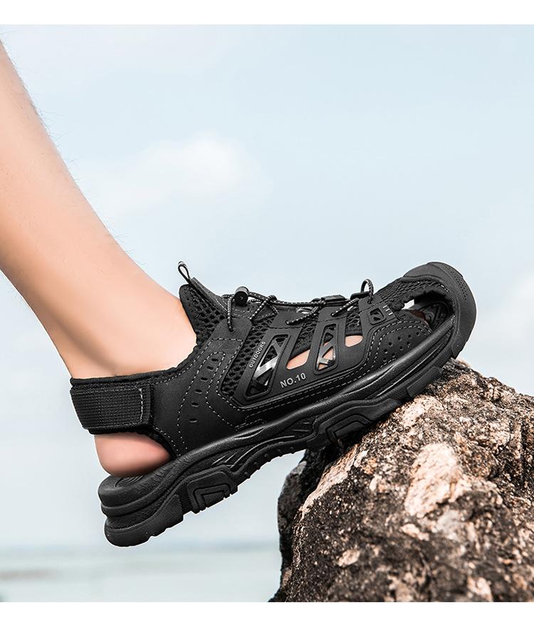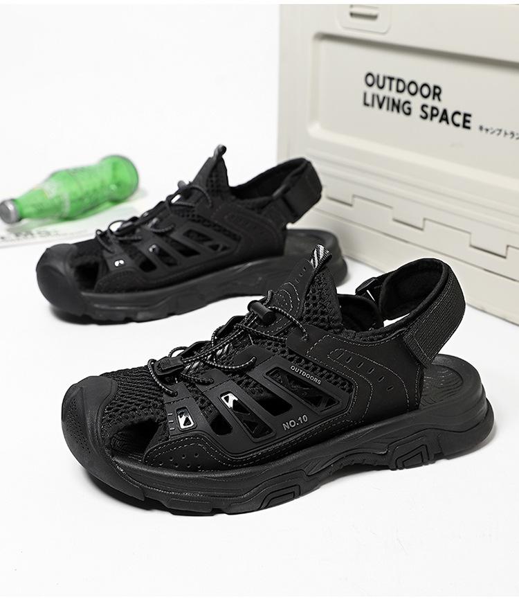Sandalias de talla grande transfronterizas para hombre, nuevas sandalias de verano de malla transpirable huecas para hombre, zapatos Baotou para deportes al aire libre, zapatos casuales de playa