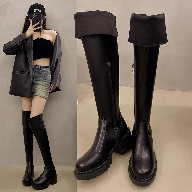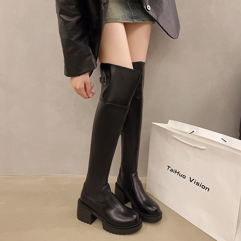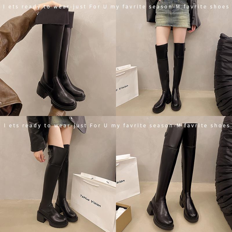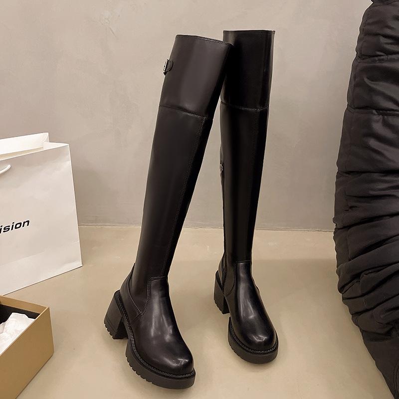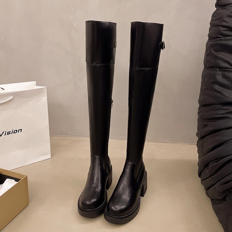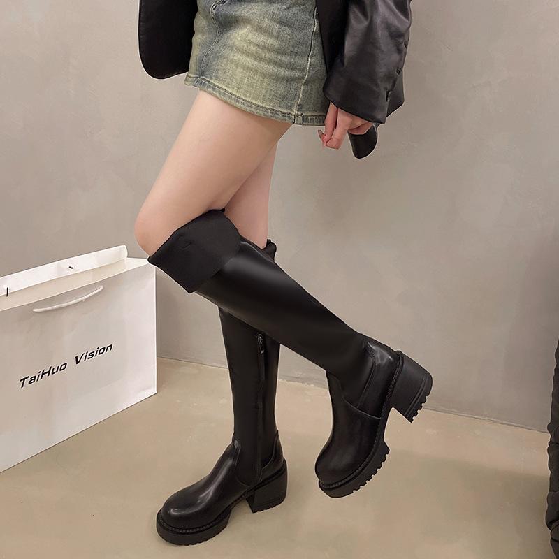 Botas por encima de la rodilla Zapatos para mujer Nuevo 2024 Nuevo Otoño e Invierno Botas finas de caballero Botas negras Botas