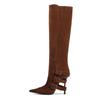 Botines cortos marrones de moda para mujer otoño e invierno 2023 Nuevo tacón de aguja puntiagudo de moda para mujer Botas de tacón alto de ante con boca en V para mujer