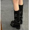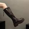 Botas largas sencillas vintage de tacón grueso marrón 2024, botas de otoño e invierno, botas de caballero superiores plisadas