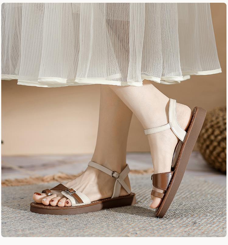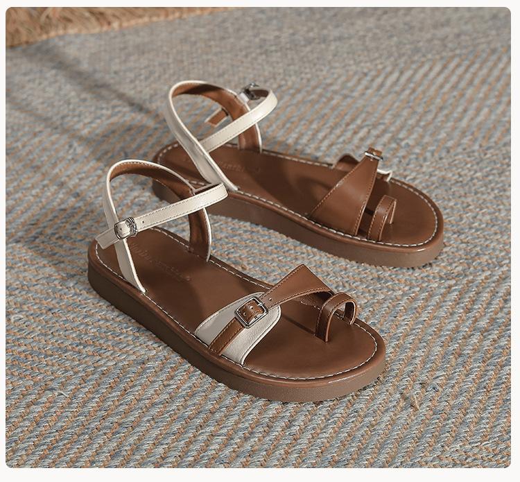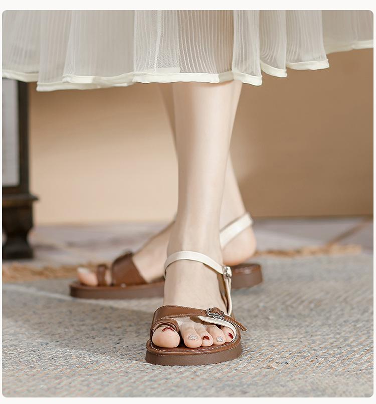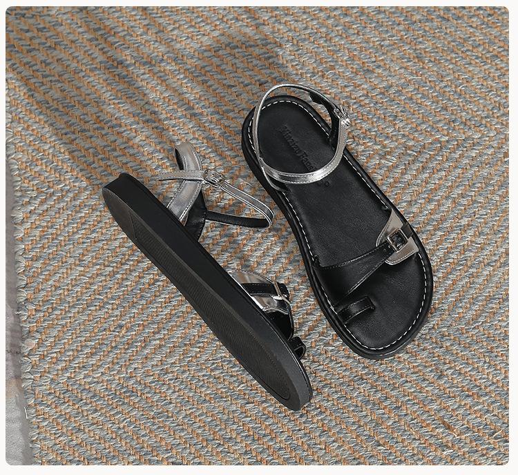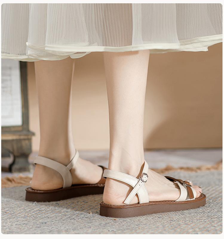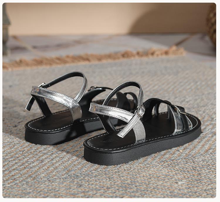 Sandalias romanas estilo hada, calzado de playa exterior, verano 2024, nuevas zapatillas de estudiante, planas y suaves, para mujer.