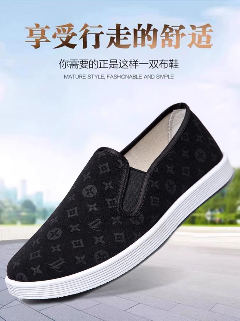 Zapatos de tela para hombres de Beijing antiguos, zapatos de trabajo con suela de neumático, zapatos de trabajo con suela de goma, zapatos sencillos para papá de mediana edad sin cordones