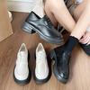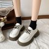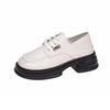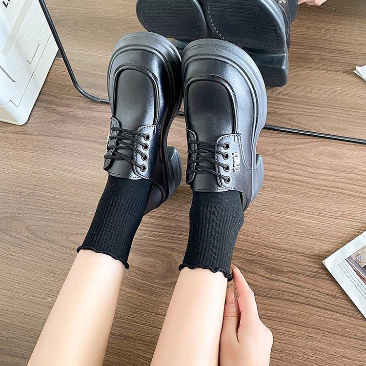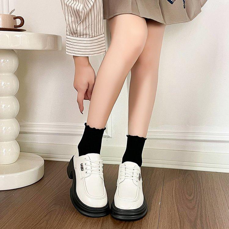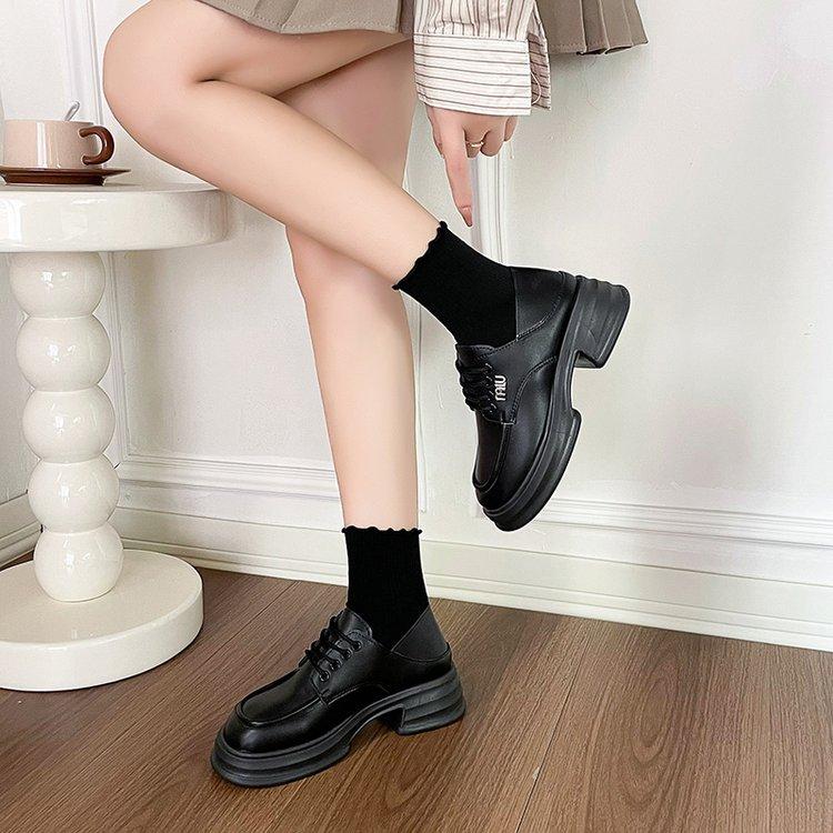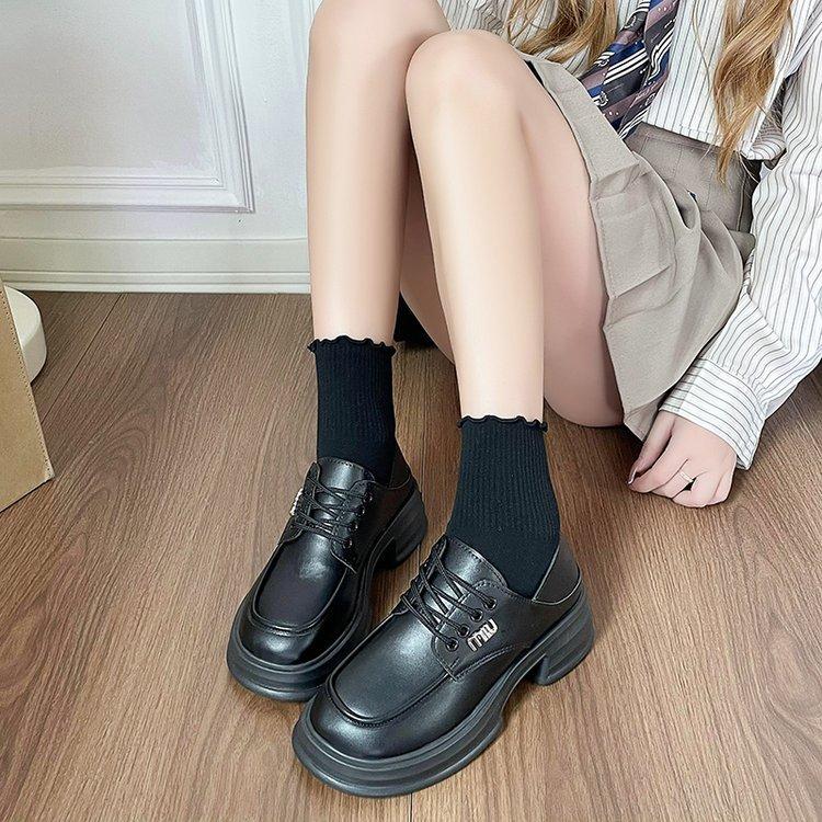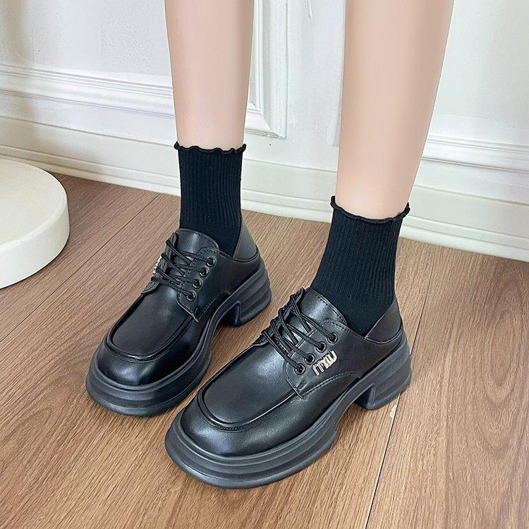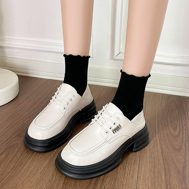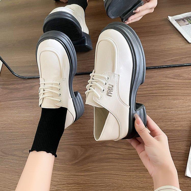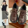 Zapatos de Cuero Pequeños de Tacón Grueso Franceses para Mujer 2024 Nuevos Zapatos con Cordones Estilo Británico Versátiles Casuales Plataforma Mocasines de Suela Gruesa