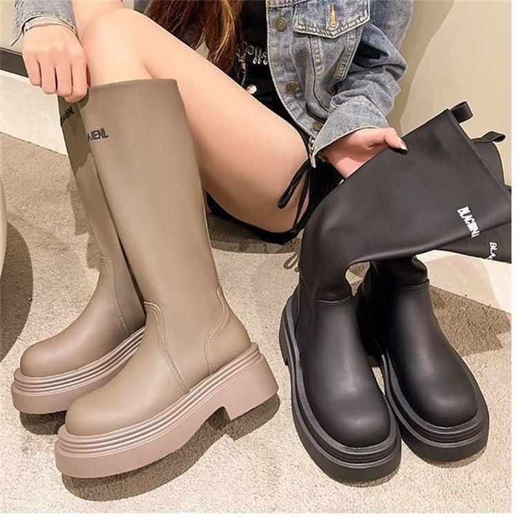Botas hasta la rodilla para mujer 2024 Otoño Nueva Moda Versátil Retro Elegante Adelgazantes Tacón Ancho Sobre la Rodilla Botas de Equitación Modernas