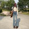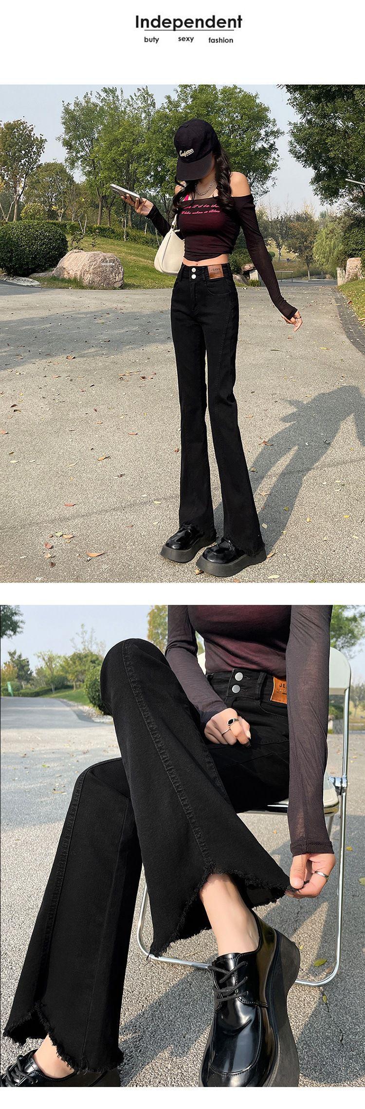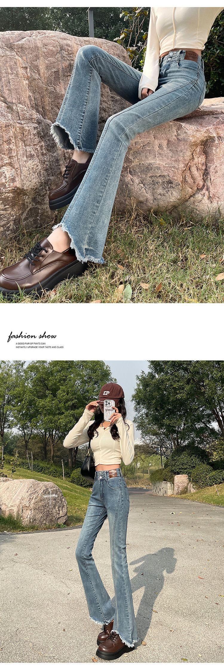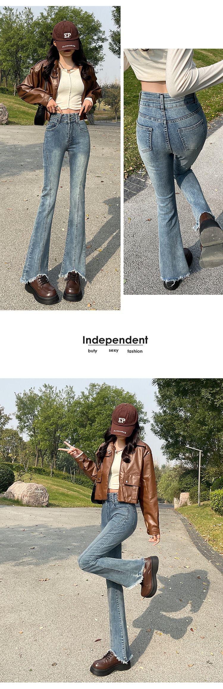1 pieza al por mayor de jeans ajustados deshilachados divididos para mujer Primavera Nuevos pantalones adelgazantes versátiles de corte entallado recortados largos