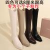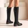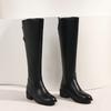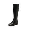 Botas Altas de Otoño e Invierno Tacón Grueso Tacón Bajo Vintage Cremallera Trasera Botas Vaqueras del Oeste Hebilla de Cinturón Botas Medias Largas para Mujer
