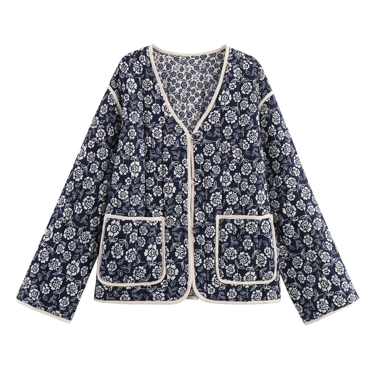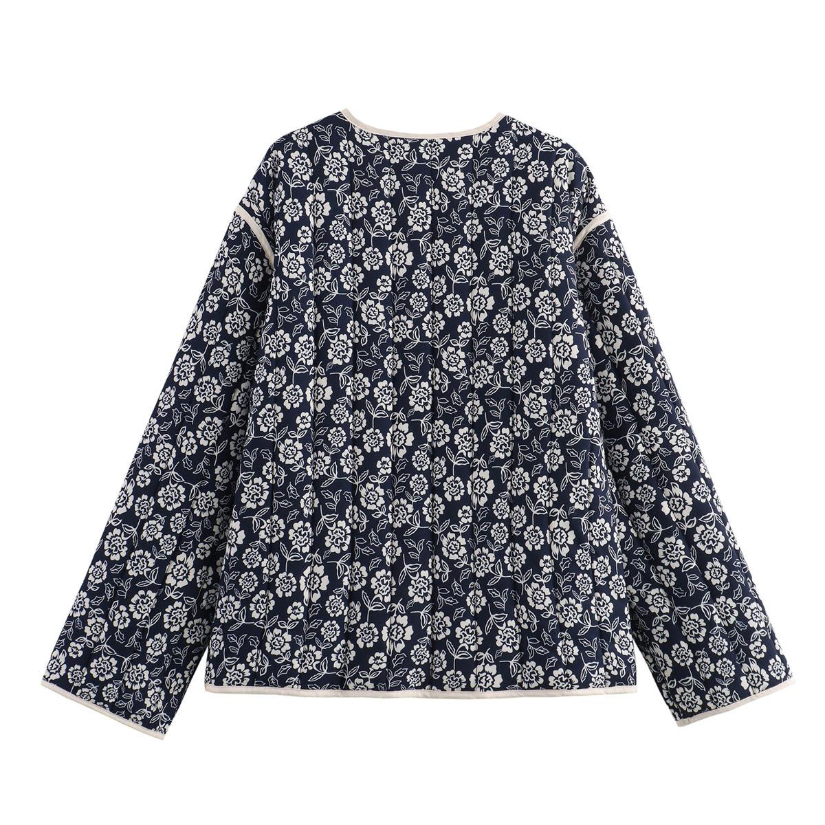 2024 otoño e invierno nuevo abrigo de chaqueta acolchada de algodón para mujer de moda europea y americana transfronteriza con estampado de rayas a doble cara W063 3131