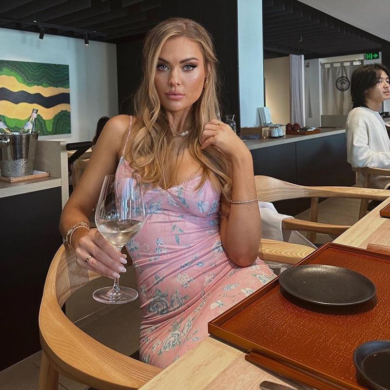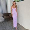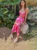 Europeo y Americano Nuevo Vestido de Tirantes Sexy con Cuello en V y Espalda Descubierta para Vacaciones Elegante Ajustado Diseño Estampado Ropa de Mujer
