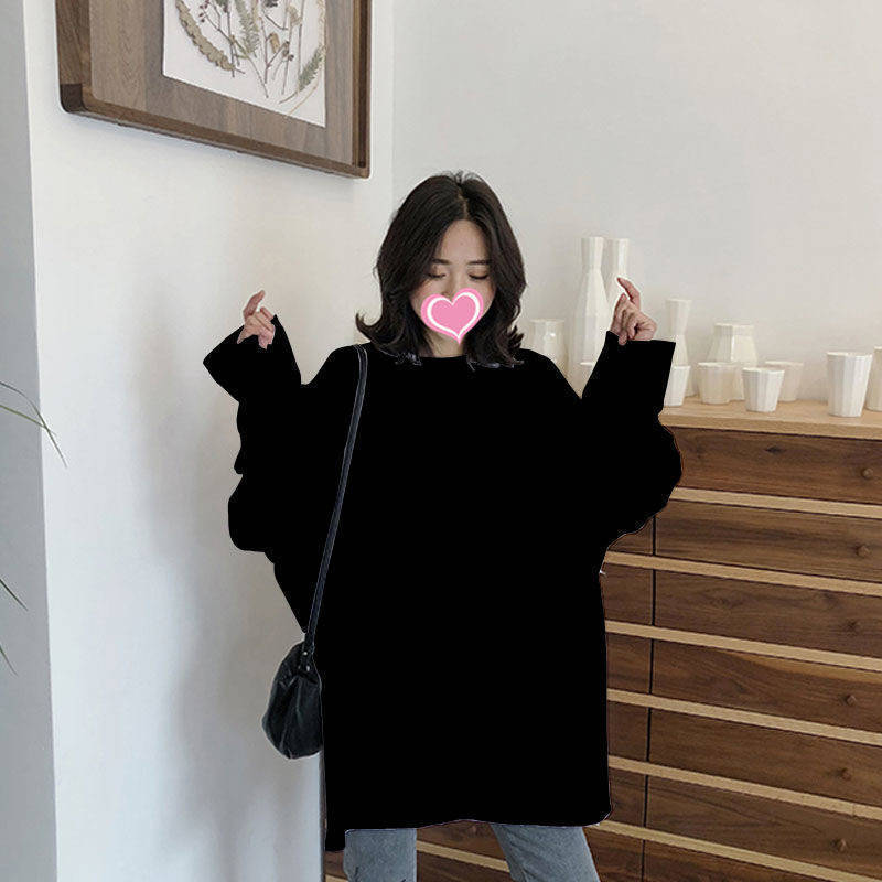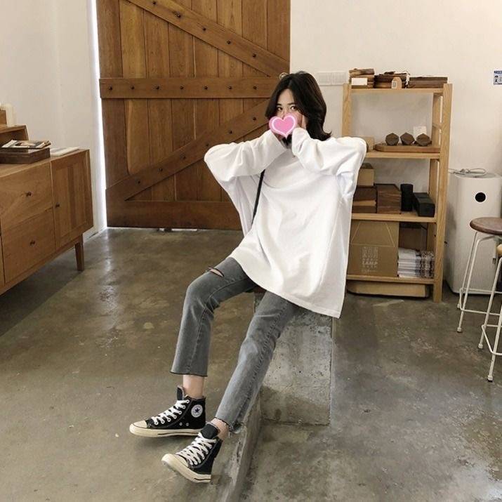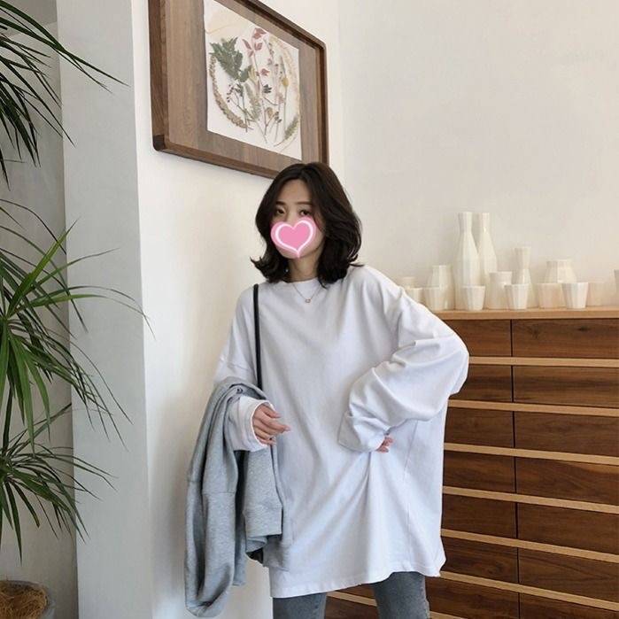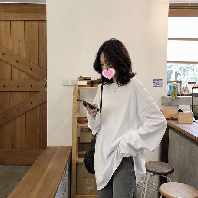 Camiseta de manga larga para mujer, otoño e invierno, camisa blanca básica, estilo coreano, estilo relajado, holgada, combinable a media pierna.