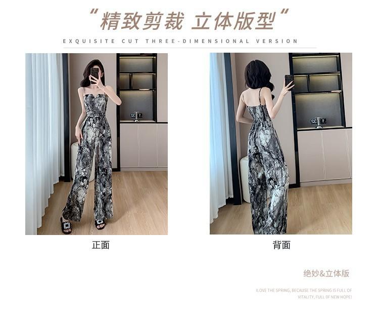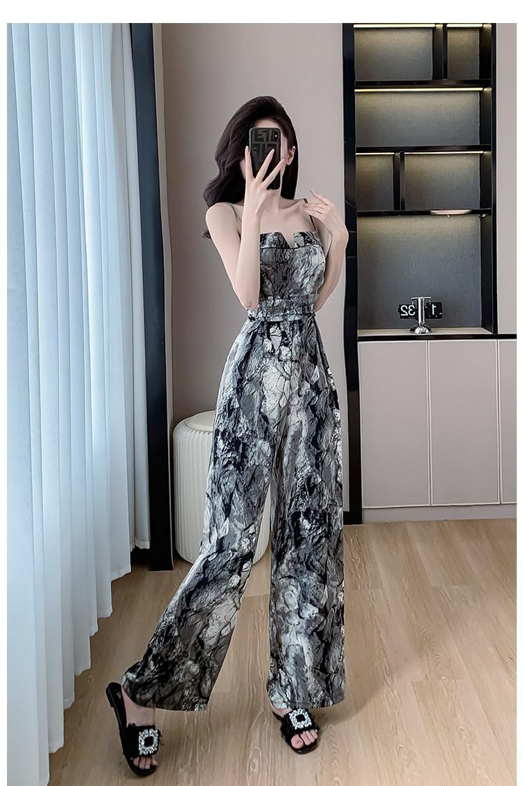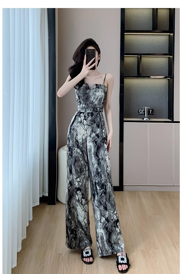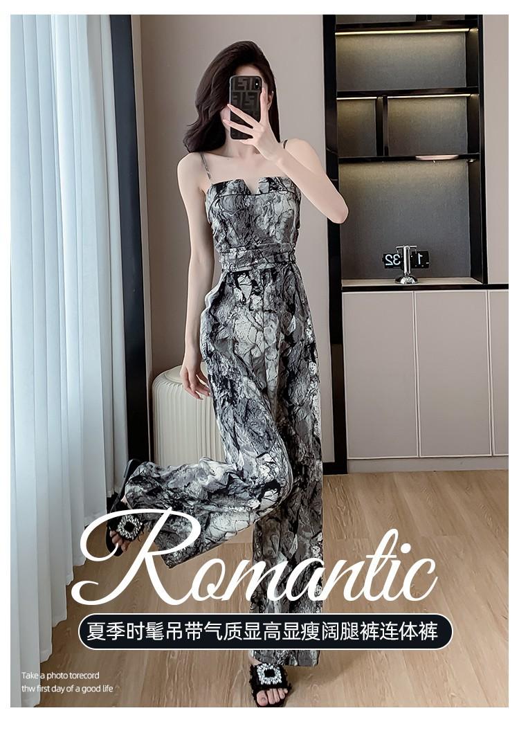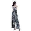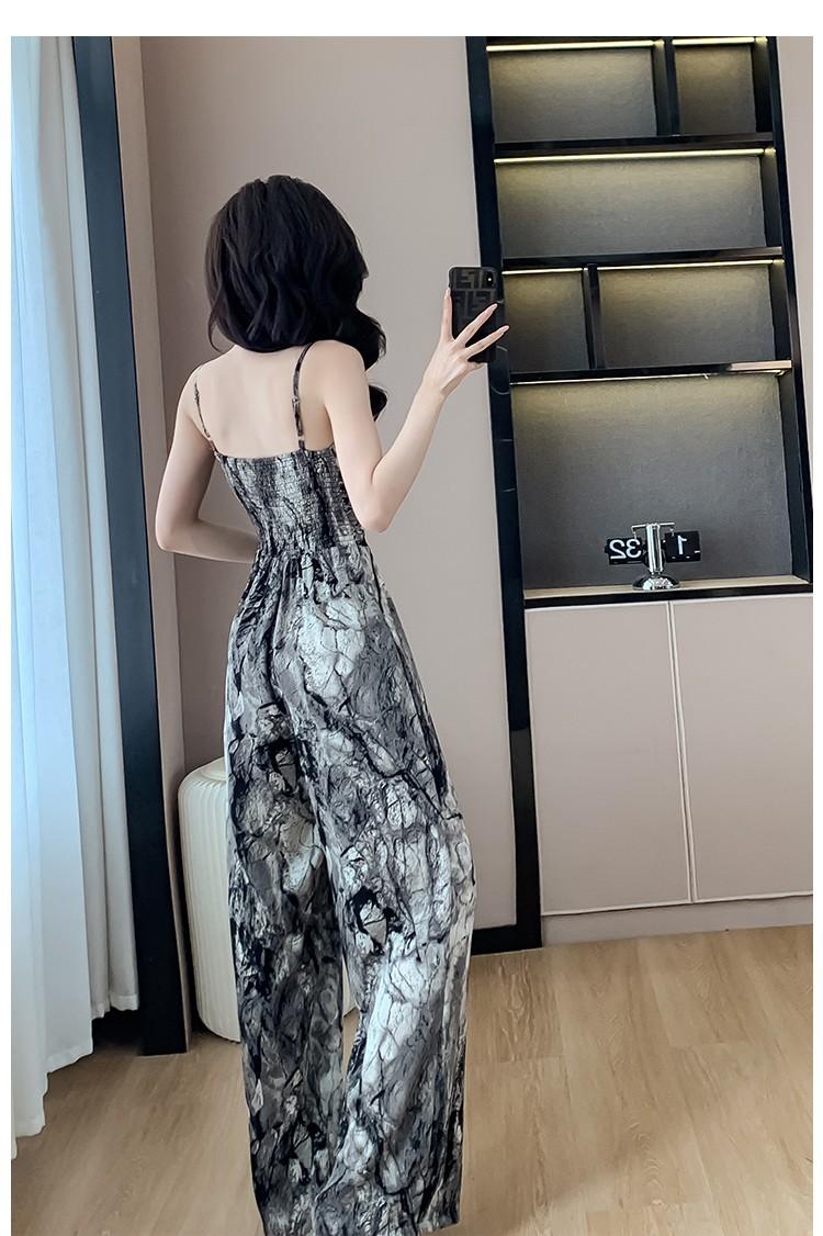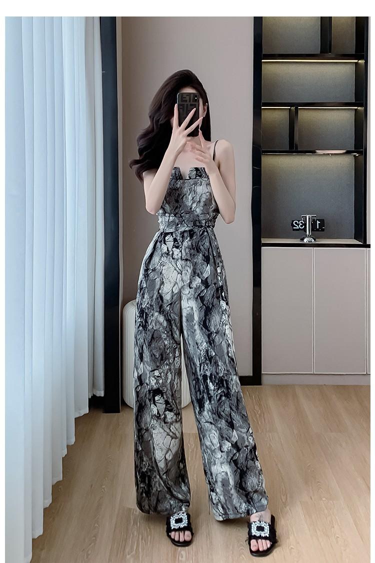Mameluco Petite Transfronterizo para Mujer Delgado de Una Pieza Pantalones de Pierna Ancha Estampado de Tinta Mameluco con Tirantes