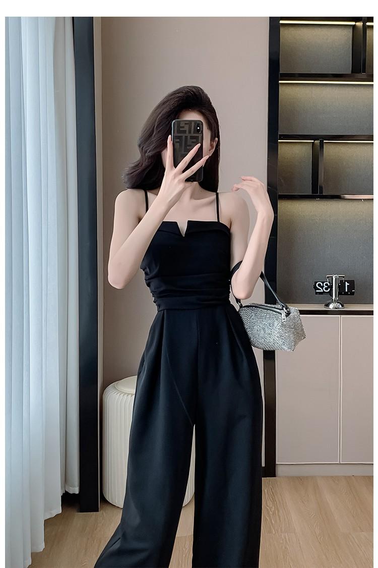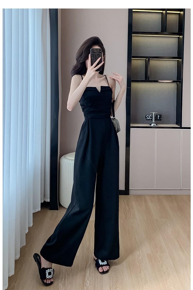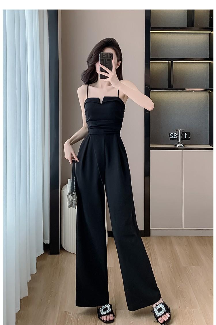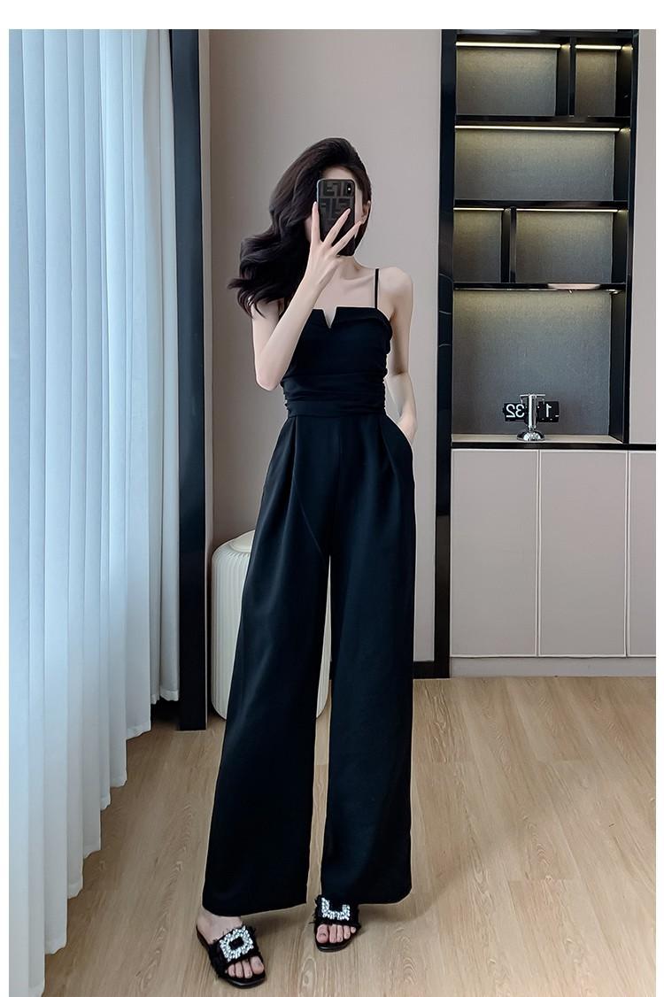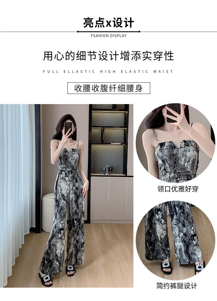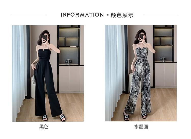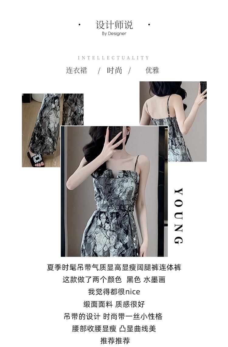 Mameluco Petite Transfronterizo para Mujer Delgado de Una Pieza Pantalones de Pierna Ancha Estampado de Tinta Mameluco con Tirantes