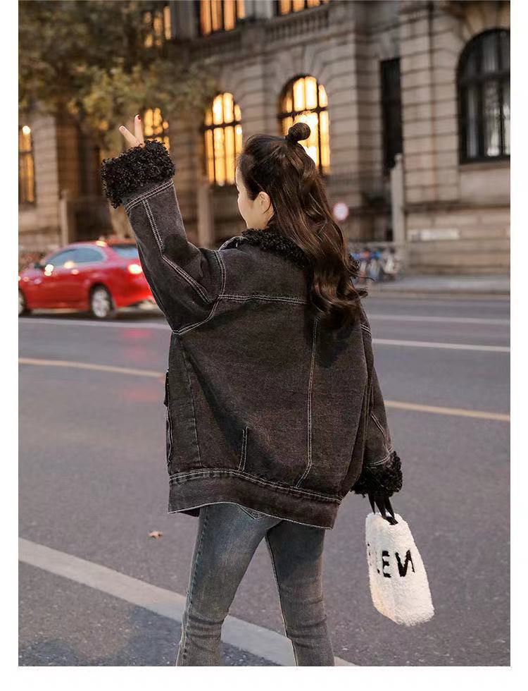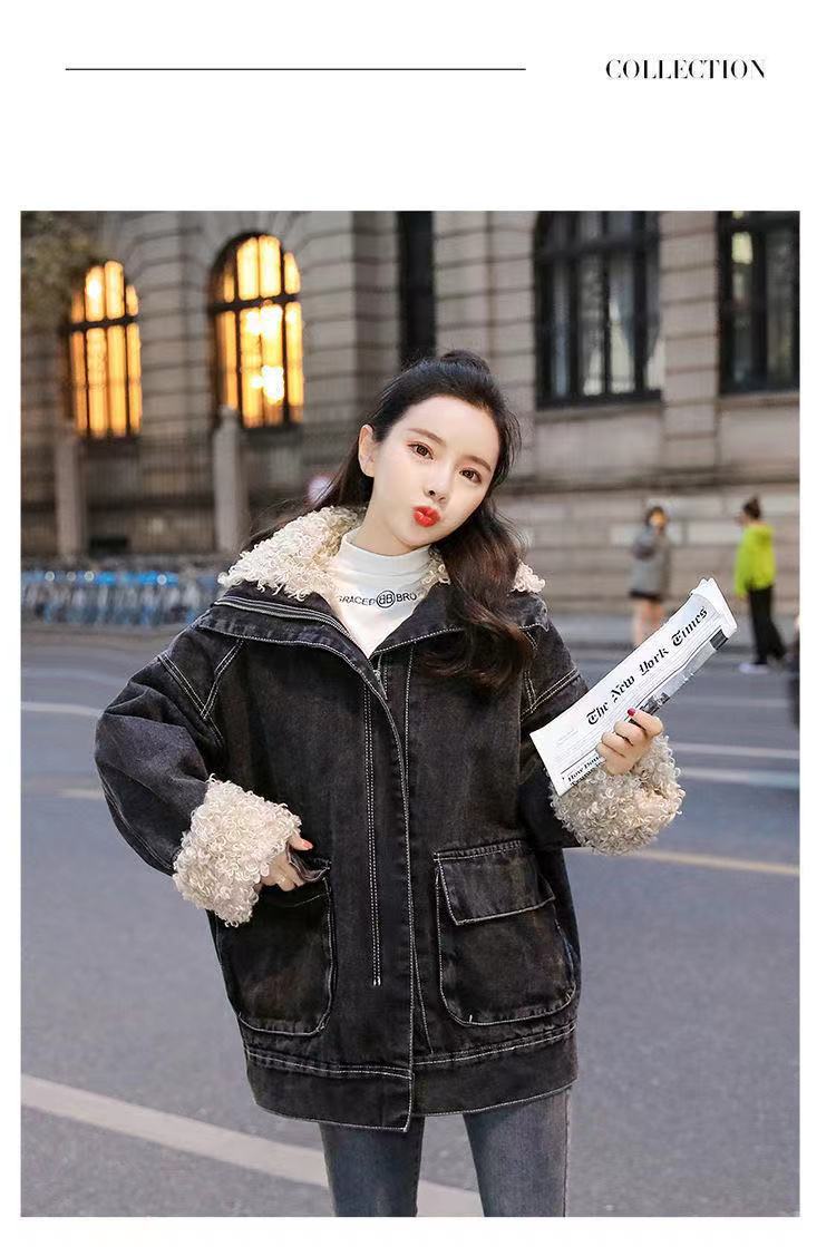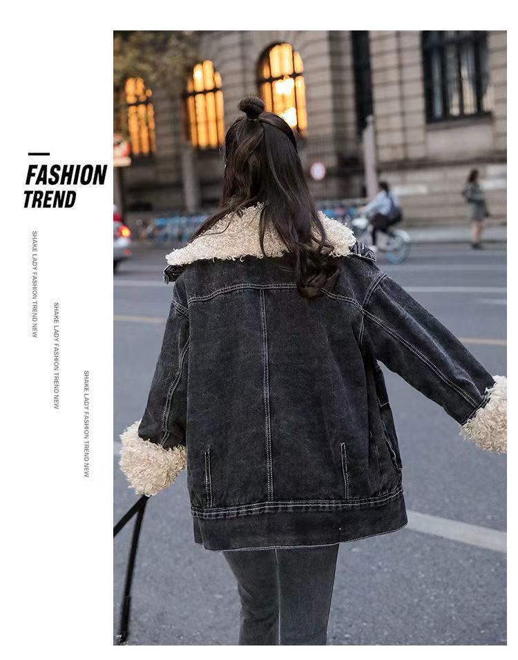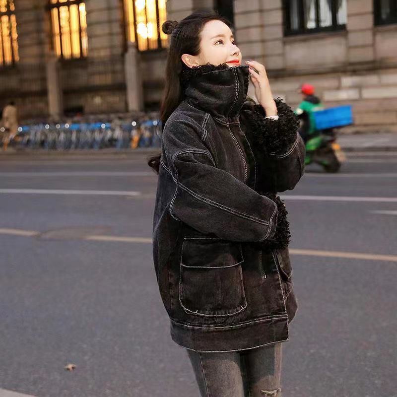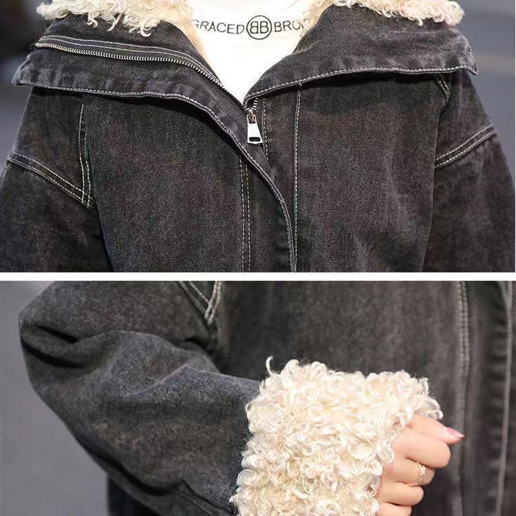 Chamarra de mezclilla gruesa con forro polar para mujer 2025 Nuevo otoño e invierno Versátil borreguito sintético de gran tamaño Abrigo de algodón de mezclilla moderno