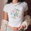 Amazon 2024 Nueva Camiseta Estampada Cuello Redondo Suave Amigable con la Piel Camiseta Base Transfronteriza Top Europeo y Americano