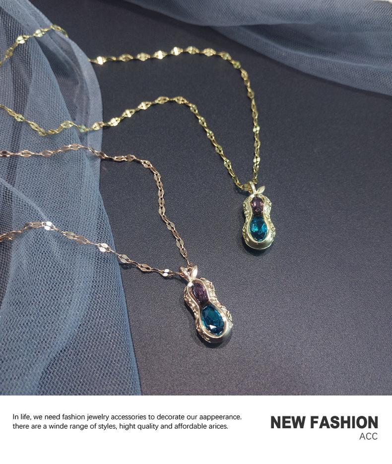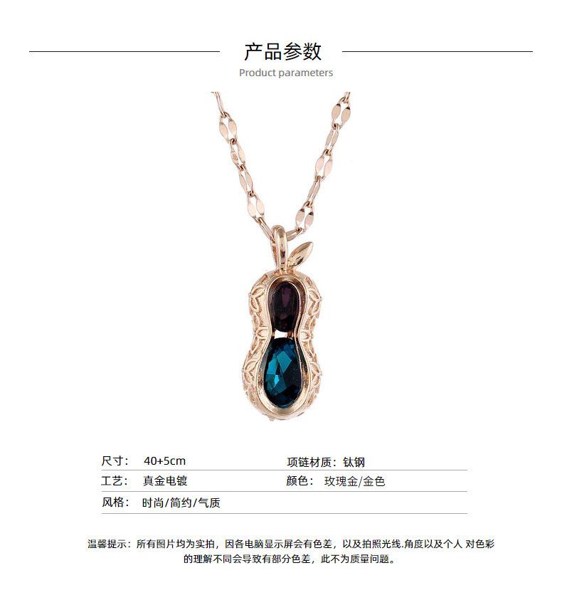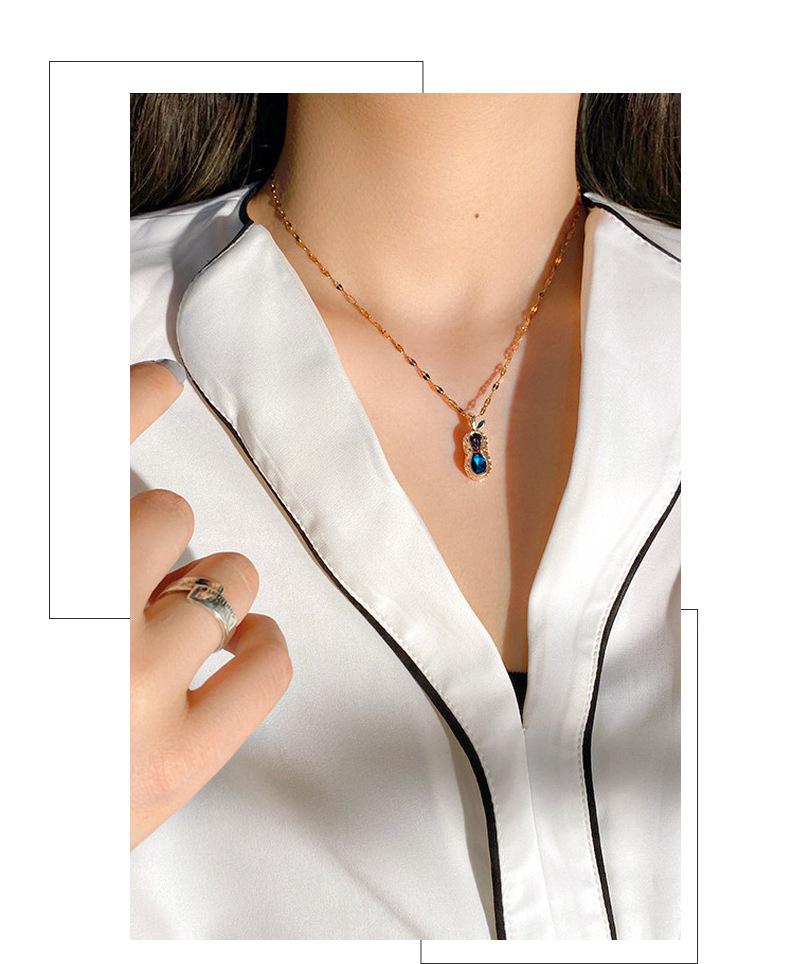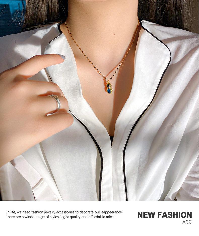 Collar Popular de Cacahuete Bicolor de Zafiro de Xiaohongshu para Mujer, Cadena de Clavícula de Acero de Titanio Moderna y Personalizada, Joyería Nicho de Lujo Ligero