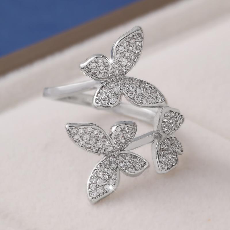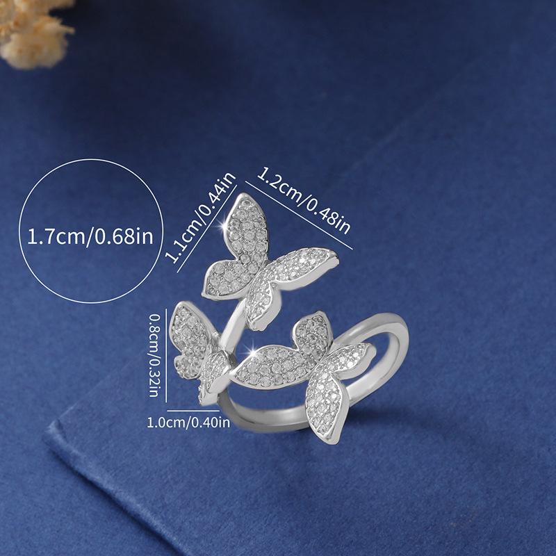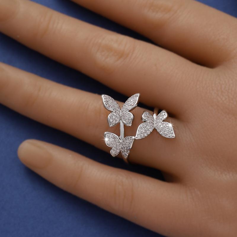 Lujo ligero de alta gama micro-incrustado diamante Súper Brillante mariposa anillo abierto femenino estilo coreano nuevo celebridad de internet mismo estilo anillo personalizado