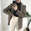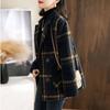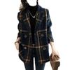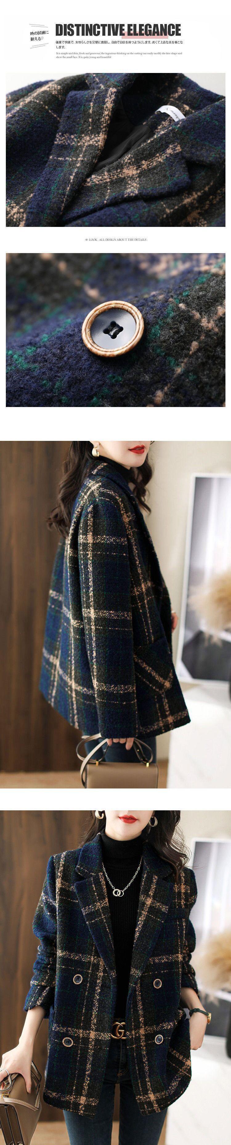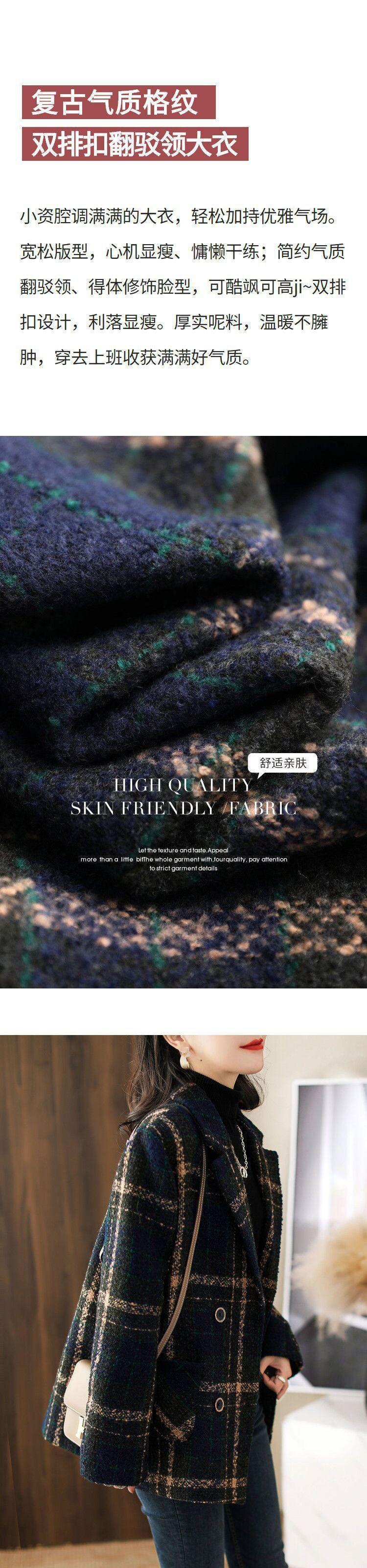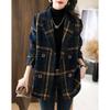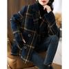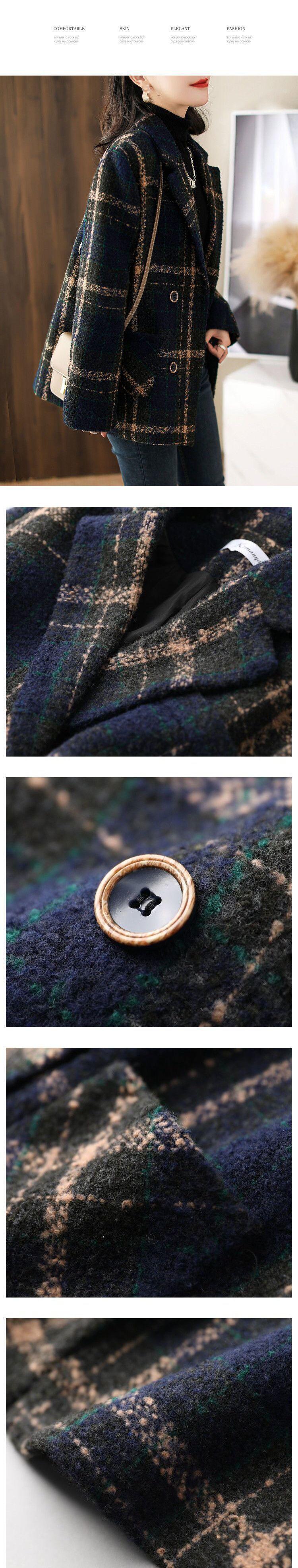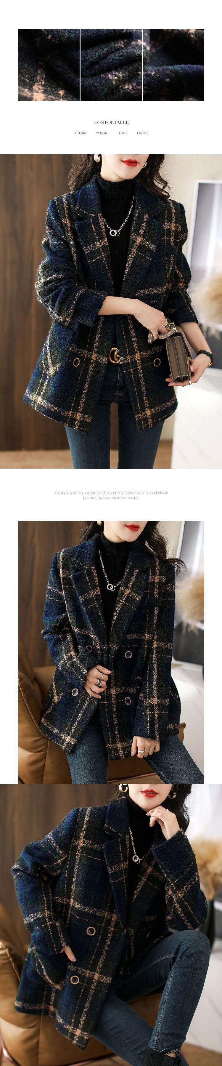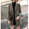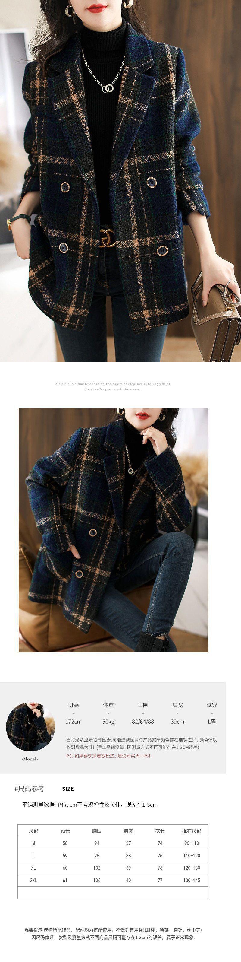 Abrigo de lana con cuello de traje para mujer, nueva moda de otoño e invierno, estilo coreano, holgado, adelgazante, retro, con costuras a cuadros, combina con todo, 2023