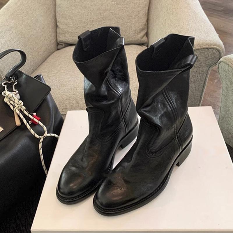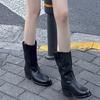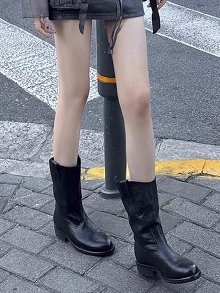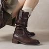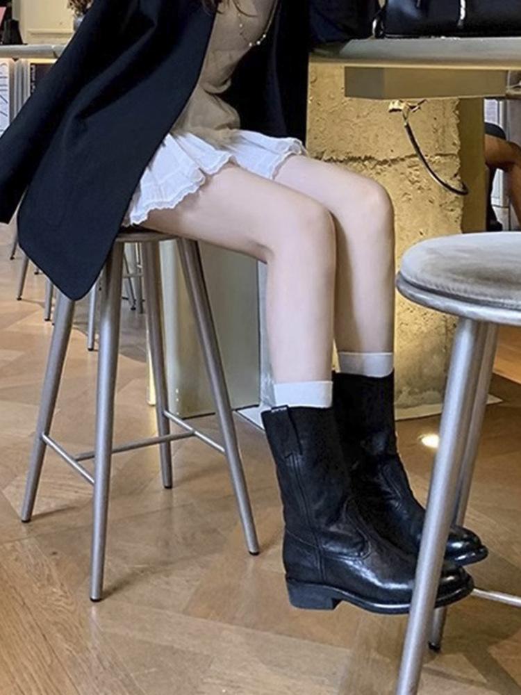 Botines occidentales de tacón grueso estilo retro coreano para mujer, botas de caballero de media caña, botines de motociclista, otoño 2024