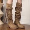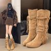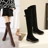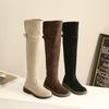 Botas de mujer Yingmeier de pierna alargada de otoño e invierno 2022, botas planas de gamuza de viento de gran tamaño, botas hasta la rodilla