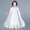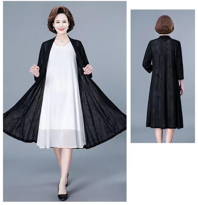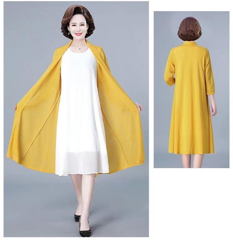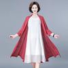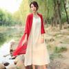 Cárdigan de algodón y lino para mujer, largo medio, suelto, de siete mangas, color liso, estilo artístico, con protección solar, oferta 2023